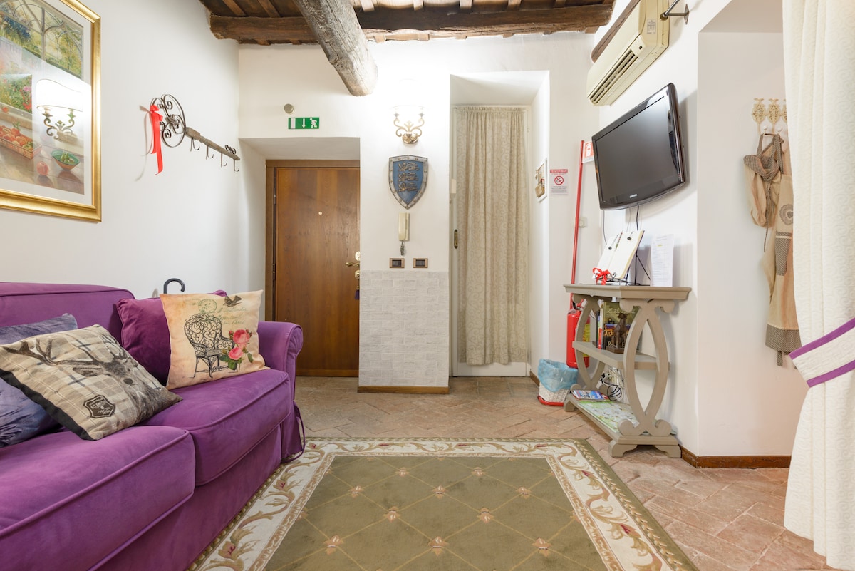在我們位於市中心的迷人兩房公寓中享受羅馬! 公寓最近翻新並精心裝潢,由一間帶小廚房的客廳、一間帶雙人床的臥室和一間舒適的浴室組成。 公寓位於羅馬歷史中心的典型街區,讓您沉浸在當地文化中,距離聖天使堡、納沃納廣場和聖彼得等標誌性景點僅幾步之遙。 公寓位於市中心,讓您輕鬆探索這座城市的奇觀!