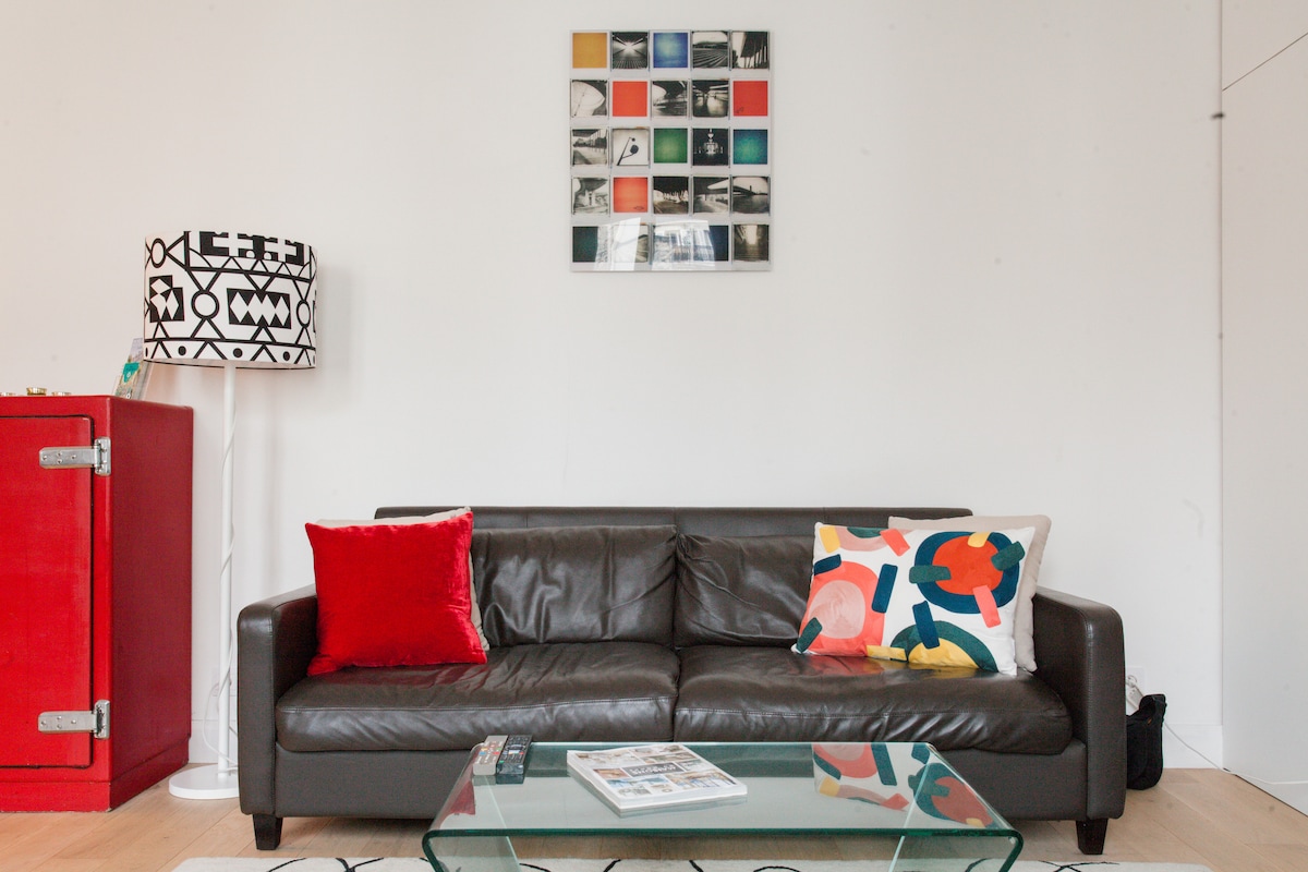 Mon appartement à vue sur Canal St Martin/proche du Marais/République/Les Galeries Lafayette/Bastille. Parfait pour les couples, les voyageurs d'affaires et familles avec enfants et Bébé! Appt 70m2 lumineux-beaucoup de charme-quartier typiquement parisien-commerces de bouche &petites boutiques. Gd salon, 2 chambres Queensize avec chacune salle de bain (dont 1 transformable en 2 lits 1 place).Cuisine équipée, plaques, four, micro-ondes, lave vaisselle.lave linge.