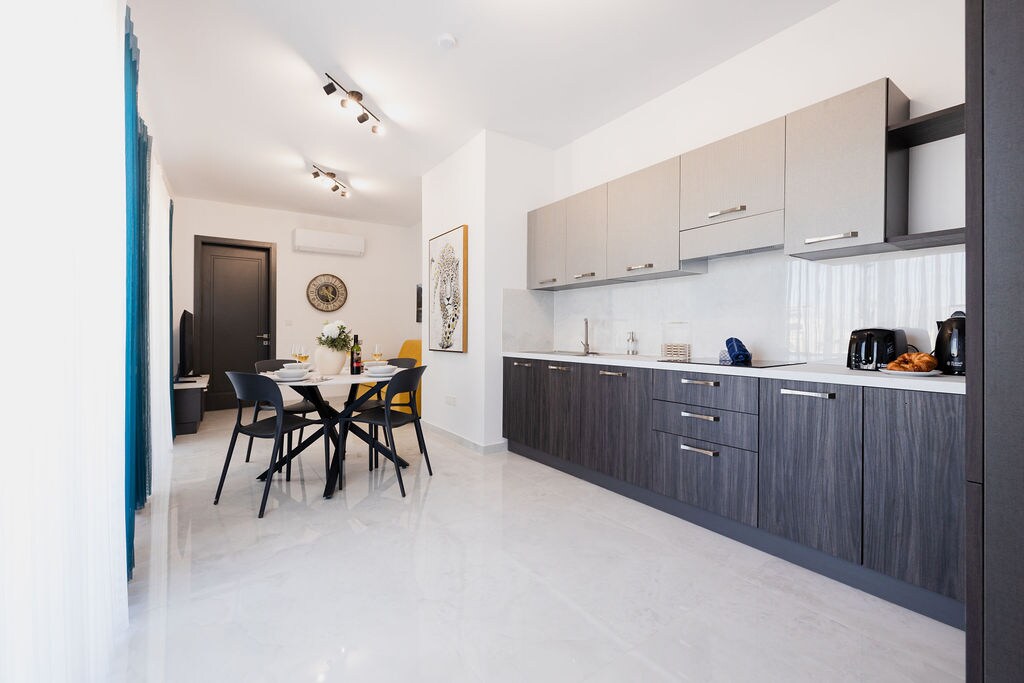 這間現代、溫馨、通風且充滿自然光線的公寓,靠近3600BC的巨石Tarxien寺廟。 它在舒適的氛圍中接待房客,提供設備齊全的廚房、客廳、餐廳、2間臥室、1間浴室、洗衣房和屋頂的使用。 舒適設施包括全套空調設備、智慧衛星電視和Wi-Fi。 安靜的街區包括一個卡特超市、迷你市場和多個巴士站。 公寓距離機場10分鐘車程。