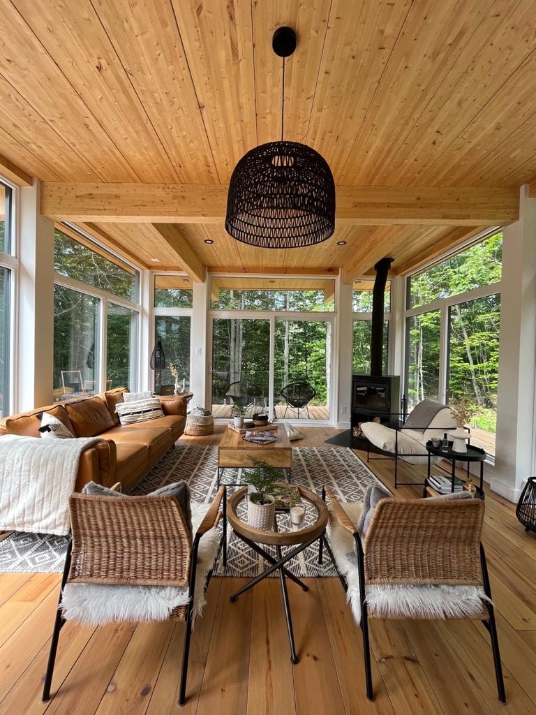 聯絡我們以獲得我們的持續促銷! 僻靜的建築玻璃小屋,俯瞰蒙特倫布朗山脈的壯麗景色! Klint Tremblant (丹麥懸崖)是獨特的設計,讓您可以享受舒適和奢華。 這是一個宏偉的玻璃建築空間,結合了自然簡約和現代奢華,距離蒙特朗布朗村( Mont-Tremblant )、全景露臺和私人熱水浴缸( Laurentian ) 10分鐘路程。 由加拿大著名設計師在1200英畝的共用區域設計!