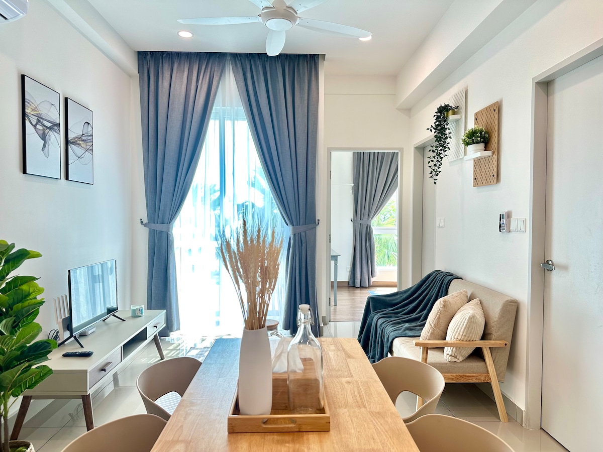 Oasis Ara Damansara中央商務區精明商務旅客的設計師套房。 設計精美的單位,配有1間臥室和1間書房。您會發現公寓配有優雅的客廳,配有實用的餐廳和廚房區域。 學習區域是我們單位的特別附加區域,專為商務旅客的需求設計。配合高速網路,您的網路連線可確保順暢的瀏覽體驗。