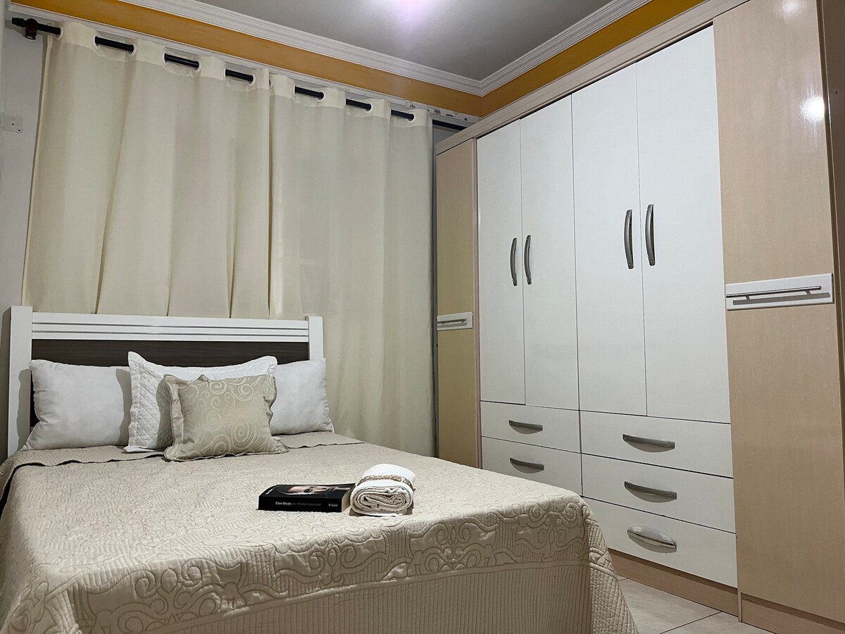 É um lugar tranquilo e bem-localizado, com padaria à 20 metros. Apartamento com 1 quarto cama queen, e sofá cama na sala. Oferecemos roupa de cama e banho. Estamos localizado à 3 quadras do centro da cidade. Estacionamento para 1 carro incluso.