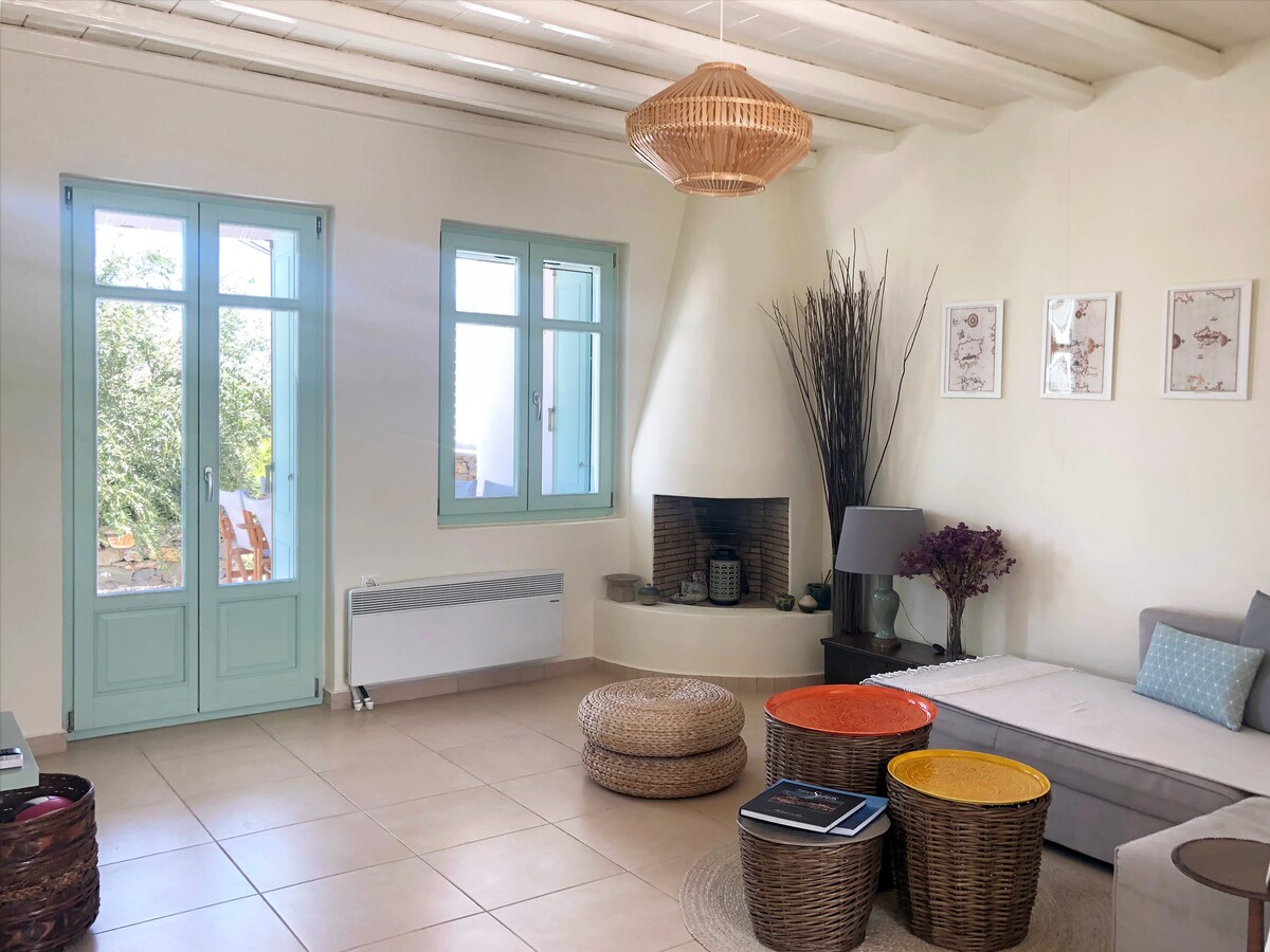 步入位於Ktikados村邊緣的獨特修復的傳統基克拉迪克房屋。放下行李,打開通往露臺的雙門,欣賞山海環抱的景色! 房源由一系列露臺組成,非常適合戶外用餐、休息和欣賞無與倫比的日落景觀。 白天,您可以期待島上獨特的當地烏鴉飛過,日落後,山谷羊群在月光下造訪。