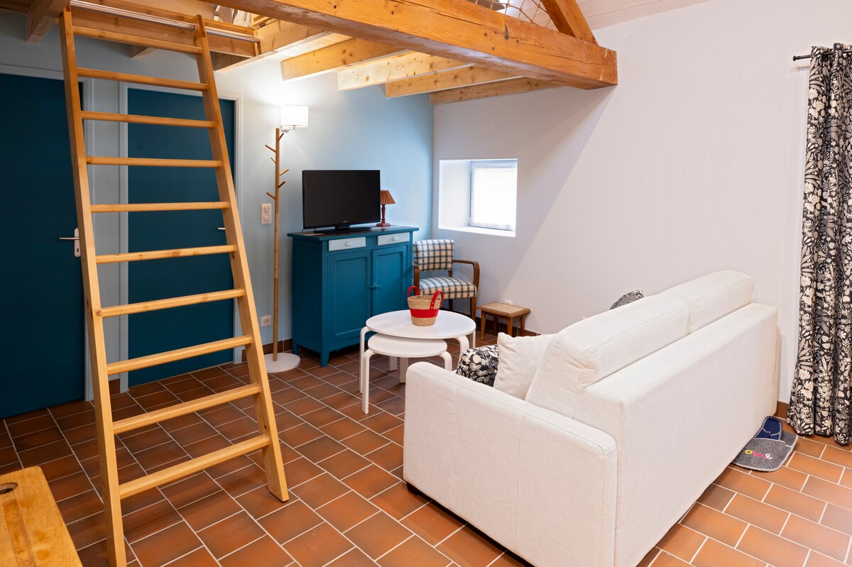 Grand loft de 50m2 aménagé au 1er étage d'une ancienne ferme, dans la campagne vichyssoise, au pied de la Montagne Bourbonnaise, à deux pas de la rivière Allier, proche de Saint Pourçain/Sioule. Le logement est bien équipé, deux ou 3 personnes y seront très à l'aise. Avec le logement vous aurez accès au "Four à Pain" dans la cheminée vous pourrez cuire vos grillades. Idéal pour un repos bien mérité, pour les randonneurs, les sportifs, pour travailler en paix.