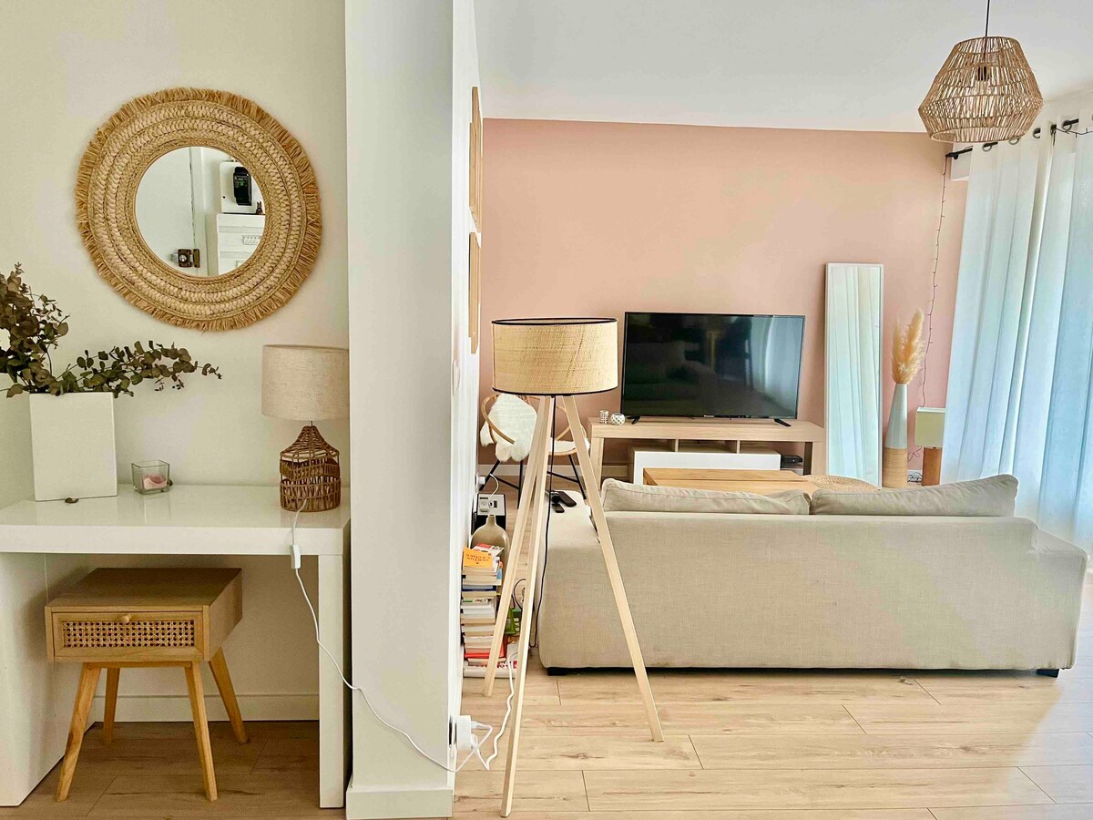 在巴黎的下一個個人或專業住宿期間,從設計公寓的4星住宿中受益。從禪宗裝飾中受益,這是一個溫馨的小繭子,經仔細研究的舒適性:雙人牀180X200、WiFi、意式咖啡機、電磁爐、微波爐、烘乾機、休息區域、步入式淋浴間、2個水槽、獨立馬桶。清潔包括住宿結束和每週一次長期住宿。此外,可能的盒子關閉。靠近RER Nogent 15分鐘巴黎中心