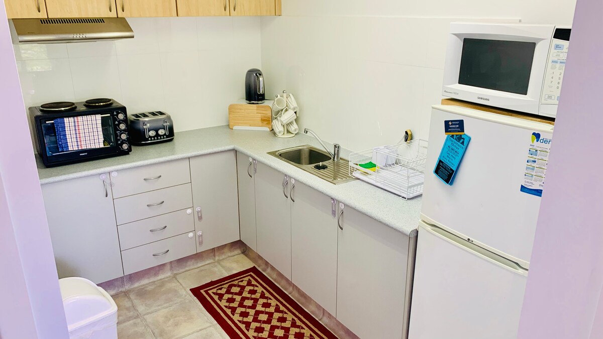 一間獨立且設備精良的公寓,位於安靜的街區,靠近公共交通工具,步行即可抵達餐廳、商店和海灘。 提供輕鬆自助入住和街外停車位。 現代化的廚房櫥櫃配有迷你吧冰箱、微波爐(無爐)、陶瓷餐具和餐具,以及精選茶和研磨咖啡。 大型現代化浴室配有洗衣機和烘乾機。 非常適合在美麗的科夫斯海岸(Coffs Coast)放鬆停留或長期住宿。