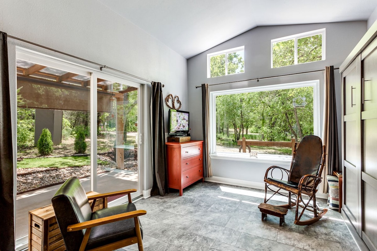 這間放鬆、完全私密的套房,配有圍欄露臺和熱水浴缸,真的是獨一無二。 享受一間一臥室公寓式空間,附設一間住宅,有自己的入口和現場停車位。 你距離 AT&T 體育場僅 45 分鐘路程,這使它成為世界盃比賽或任何大型活動的理想基地。 內部有洗衣機/乾衣機、步入式衣櫃、古樸的工作空間和社區湖泊。 開車前往沃斯堡市中心或韋瑟福德很快。