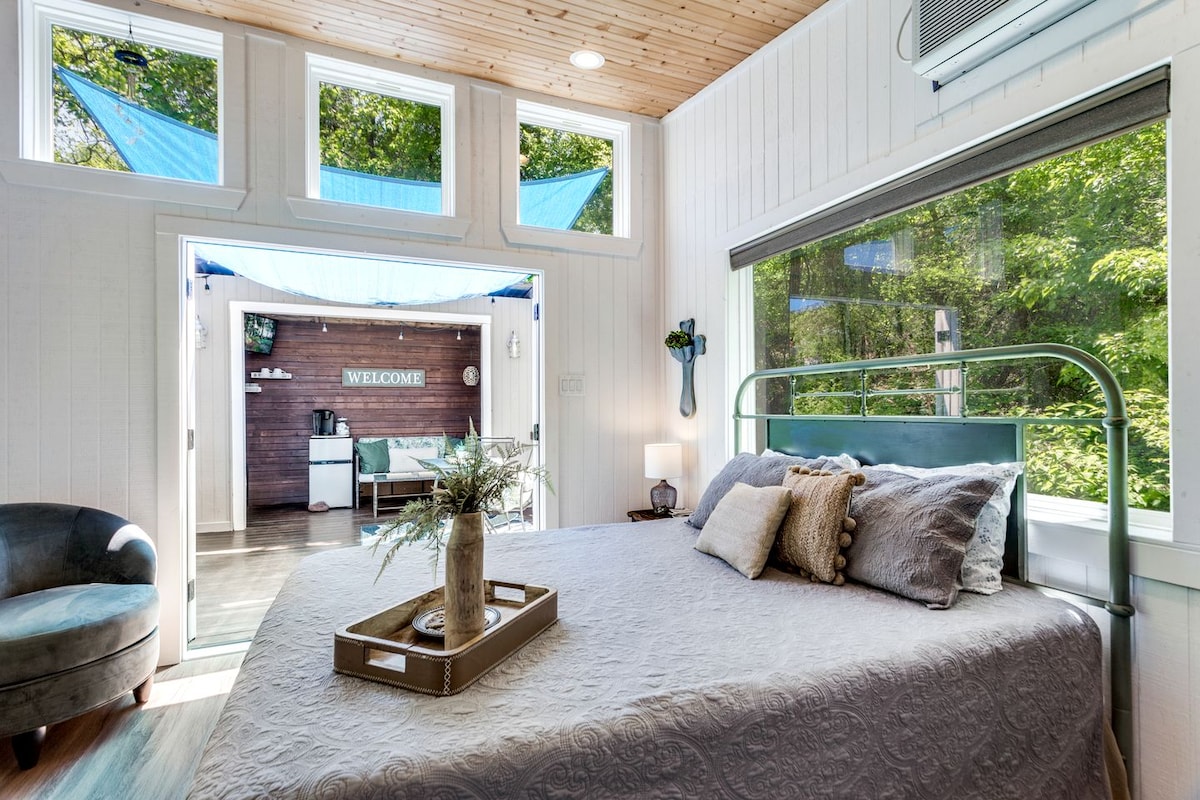 ✓ Riverfront ✓ 籃球場和扔沙包遊戲 ✓ 大型焚火台 ✓ 允許攜帶寵物入住 ✓ 全套廚房 ✓ 辦公桌和 Wi-Fi ✓ 靠近十幾個婚禮場地 前往寧靜的河濱 Los Brazos Treehouse(位於沃思堡以西 64 公里處)。 可容納8-12位房客,享受寧靜的景色、野生動物觀賞和各種戶外活動。 有烤肉架和大吊床等設備與服務。 在舒適的室內放鬆身心,或探索戶外。 立即預訂,享受寧靜的假期! !