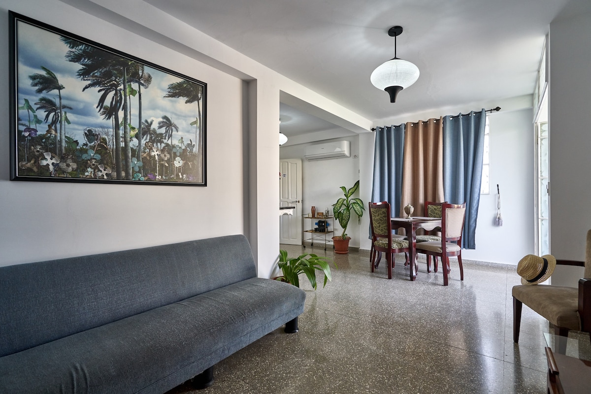 我們有發電機,以防停電。 住在哈瓦那市中心的舒適房源! 公寓位於維達多,一個安全的社區。 房間寬敞乾淨。 靠近市中心、公園、藝術和文化。 漂亮、氛圍、戶外空間和街區。 我的房源非常適合情侶、獨行冒險者、商務差旅人士、有小孩的家庭。 我們為您提供免費WiFi。 我們提供歐陸式早餐(含雞蛋、吐司、果汁、咖啡、牛奶、水果等),每人7美元。