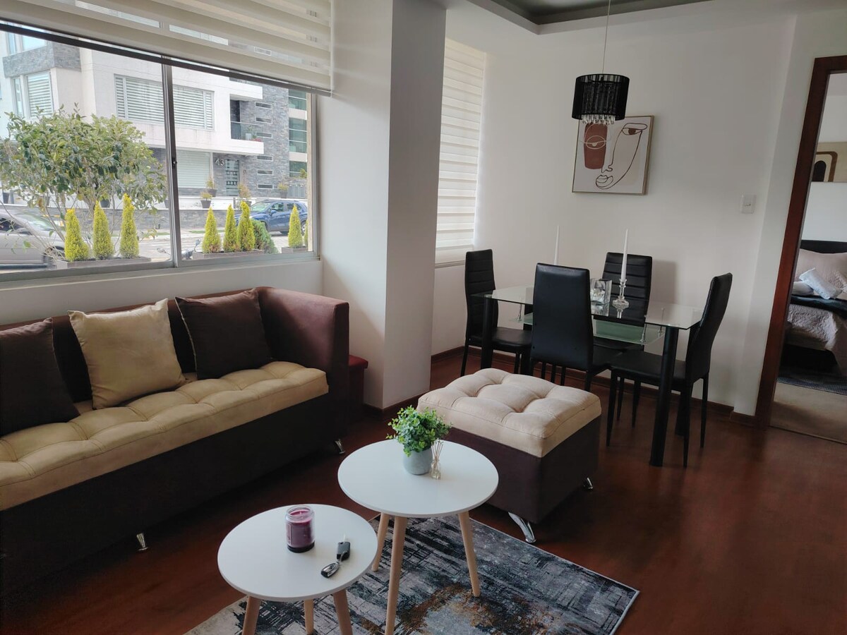 舒適且設備齊全的套房,距離美國大使館和 Solca 醫院僅兩分鐘路程。 位於市內最安全的住宅區之一。 造訪基多,享受我們提供的所有服務 24 小時保安 綠地 兒童遊樂設施 高速 WiFi 設備齊全的廚房 大樓內有私人停車場 洗衣機和烘乾機 肥皂、洗髮精和護髮素 您在基多的最佳選擇。