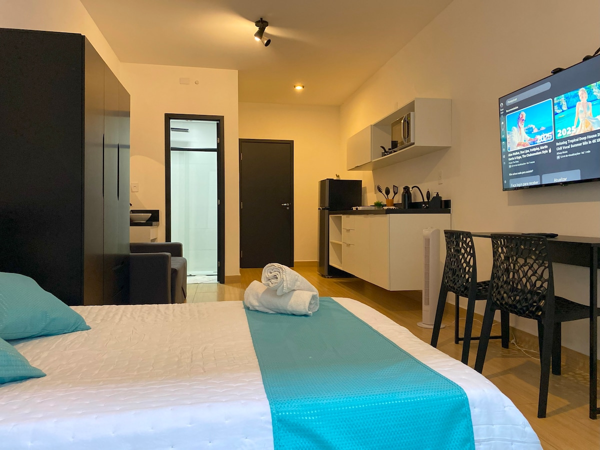 Apartamento novo, completo exclusivo! Cobertura/área de lazer para descanso IMPORTANTE, LEIA COM ATENÇÃO: APARTAMENTO NO 1º ANDAR (1 LANCE DE ESCADAS) CHECKIN A PARTIR DAS 15h (dentro do Studio) ACESSO AO PRÉDIO A PARTIR DAS 14:30h (A SENHA DE ENTRADA AO PREDIO É LIBERADA SOMENTE NESSE HORARIO, NÃO CONSEGUINDO ENTRAR ANTES) NÃO TEMOS LOCAL PARA GUARDAR MALAS ANTES DO HORÁRIO DO CHECKIN