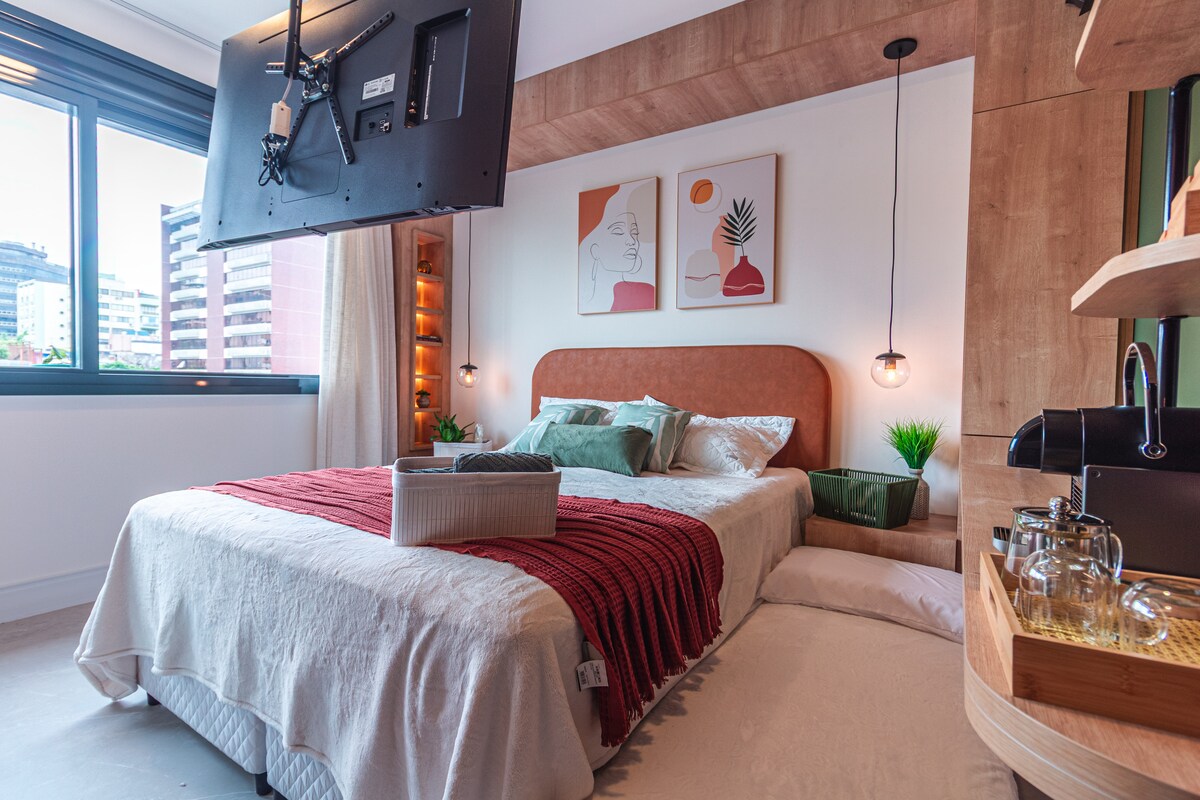 🏡 Nosso estúdio moderno e aconchegante, ideal para até 2 pessoas, oferece um espaço privativo, Wi-Fi rápido e todo o conforto necessário. O prédio novo conta com rooftop, coworking, academia, espaço gourmet, lavanderia e piscina com borda infinita. Estamos a 11 minutos do aeroporto e 12 da rodoviária, com fácil acesso a bares, restaurantes e academias. Segurança garantida com fechaduras digitais. Estadia tranquila, prática e completa, com tudo para seu conforto. ✨