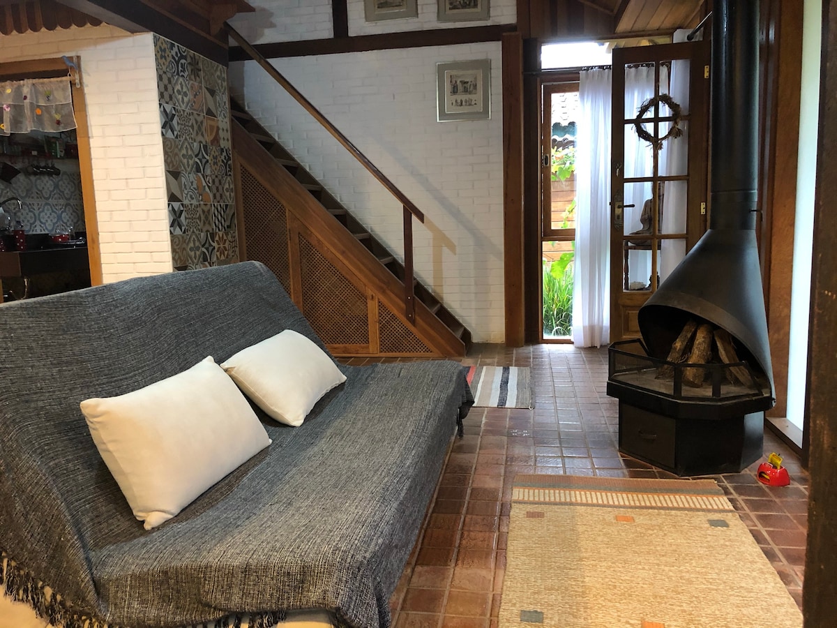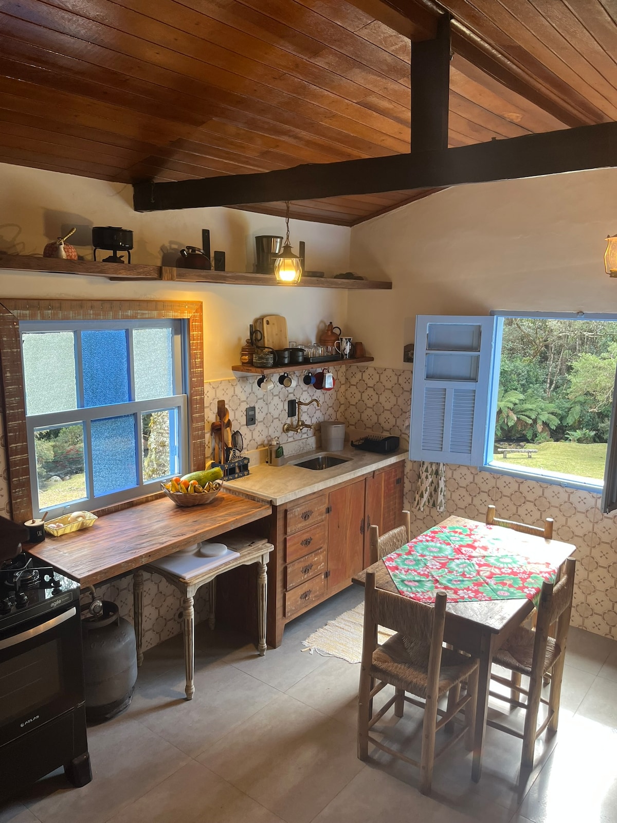 位於Maromba的Sitio。房源有兩間套房,其中一間配有水力按摩,客廳配有沙發牀。 套房配有大牀、壁爐,可欣賞山景和花園景觀。 大客廳配有壁爐、沙發和躺椅(可作為雙人床)、智慧電視、餐桌、社交浴室和可俯瞰山景的大陽臺。 美式廚房整合在客廳裡 整套房子都有WiFi。