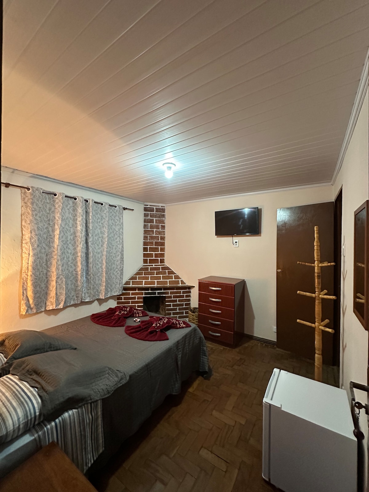 - 70 平方公尺的 Beija-flor Master 小屋,超級舒適,有兩個環境、特大床、日式按摩浴池、壁爐、迷你吧、帶淋浴間的浴室、43 吋 4k 電視(有線電視,有高畫質頻道)、Wi-Fi、客廳、冷暖空調、獨立廁所 - 迷你廚房、餐桌、咖啡機、微波爐和全套廚房用具,以及俯瞰河景的美麗陽臺。 備註: 5歲以下兒童免費。 6 至 12 歲兒童每日 20% 的費用。