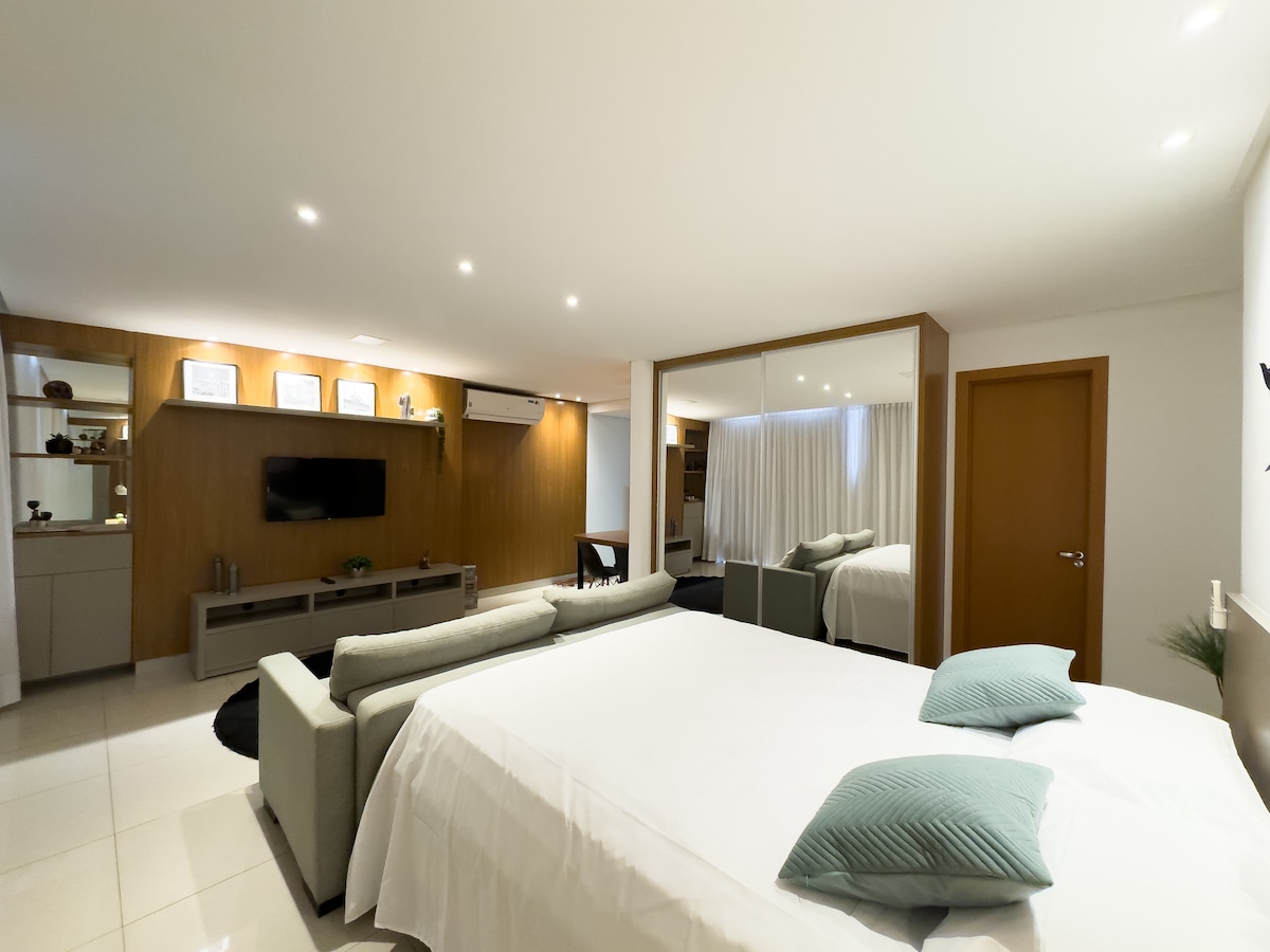 💯Marista Premium體驗萬歲! 公寓設有獨立臥室和客廳、兩台智慧電視、快速Wi-Fi和您享受Goiânia時尚所需的所有舒適。 非常適合商務或休閒旅行。 透過語音指令開啟空調和電視,透過Alexa聆聽音樂,並在Goiânia最好的地區享受Marista Sector和現代Bueno Sector的美食! Blend Smart Style Condominium Creation ®️ Renovato Residences