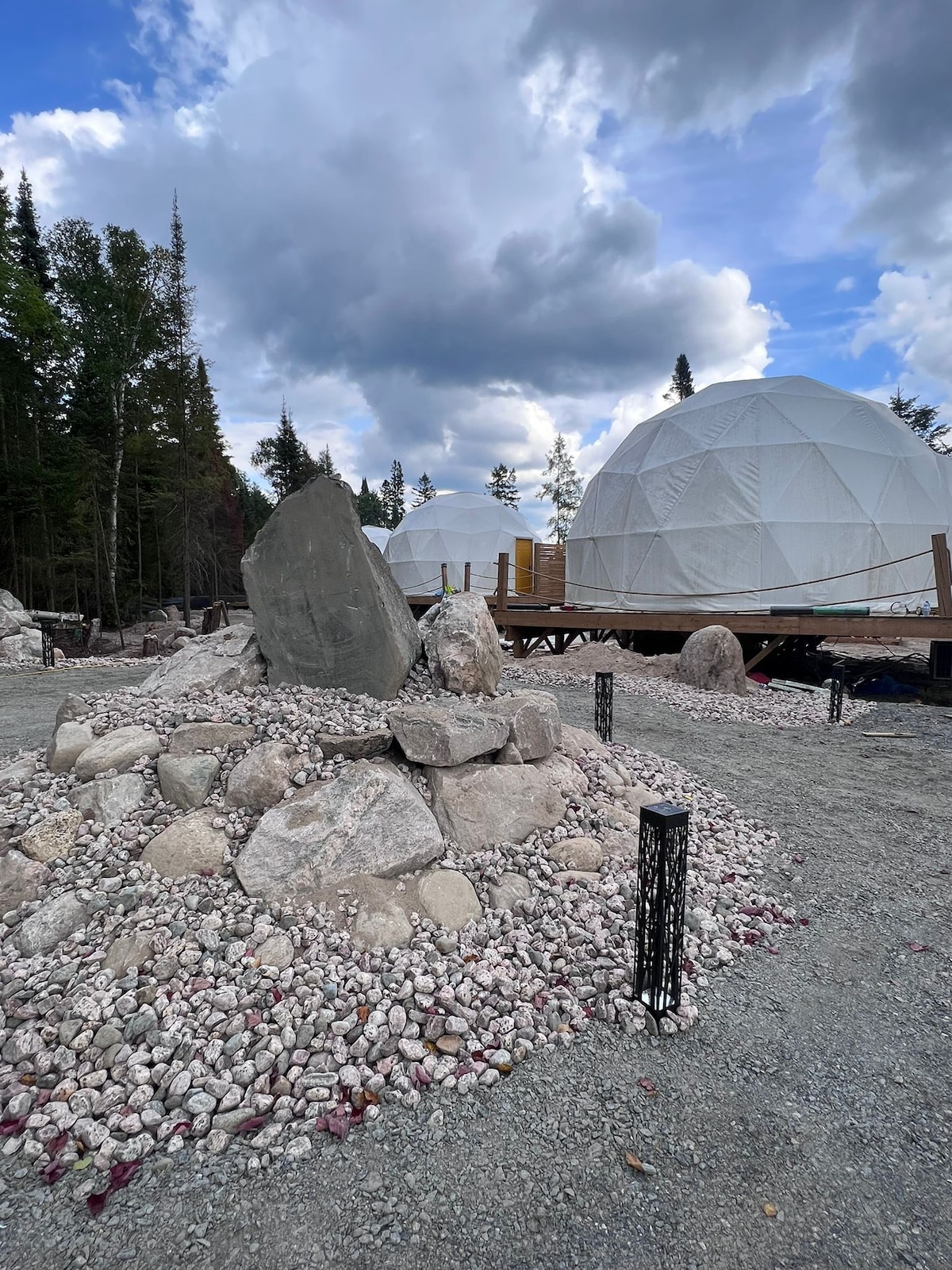 入住 The Northern Stillness Dome,重回大自然的懷抱。 獨特的開放式概念生活空間(臥室不是私人的)隱藏在北安大略省風景優美的Loring地區。 圓頂屋的後方被茂密的綠植所包圍,前方則面向高速公路。 房源距離無數湖泊僅4-6分鐘。 這個區域是放慢腳步、探索附近湖泊、在寧靜的水域中划槳或釣魚的完美之地。 在羅林港,你可以租獨木舟、槳板,還有釣魚的機會。
