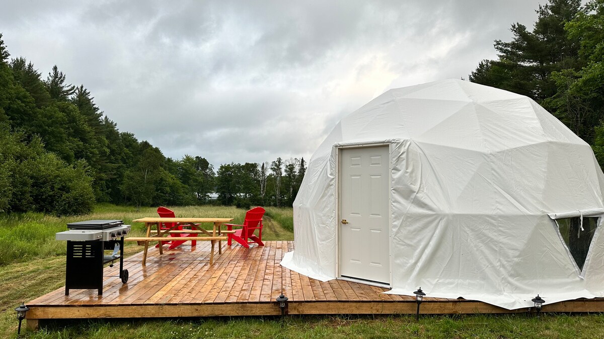 我們的豪華網格球穹頂坐落在安大略美麗的小屋鄉村的2英畝以上,是遠離日常生活的繁忙的完美選擇。 每個穹頂都配備2張1.8公尺寬雙人牀、配備家電的小廚房、全尺寸浴室和牀單,同時體驗露營舒適性。 我們有4個圓頂屋,每個都有自己的空間。享受早晨的咖啡,俯瞰鹿湖的遊泳友好型水域,然後乘坐獨木舟探索所有景點(租金視預訂狀況而定)