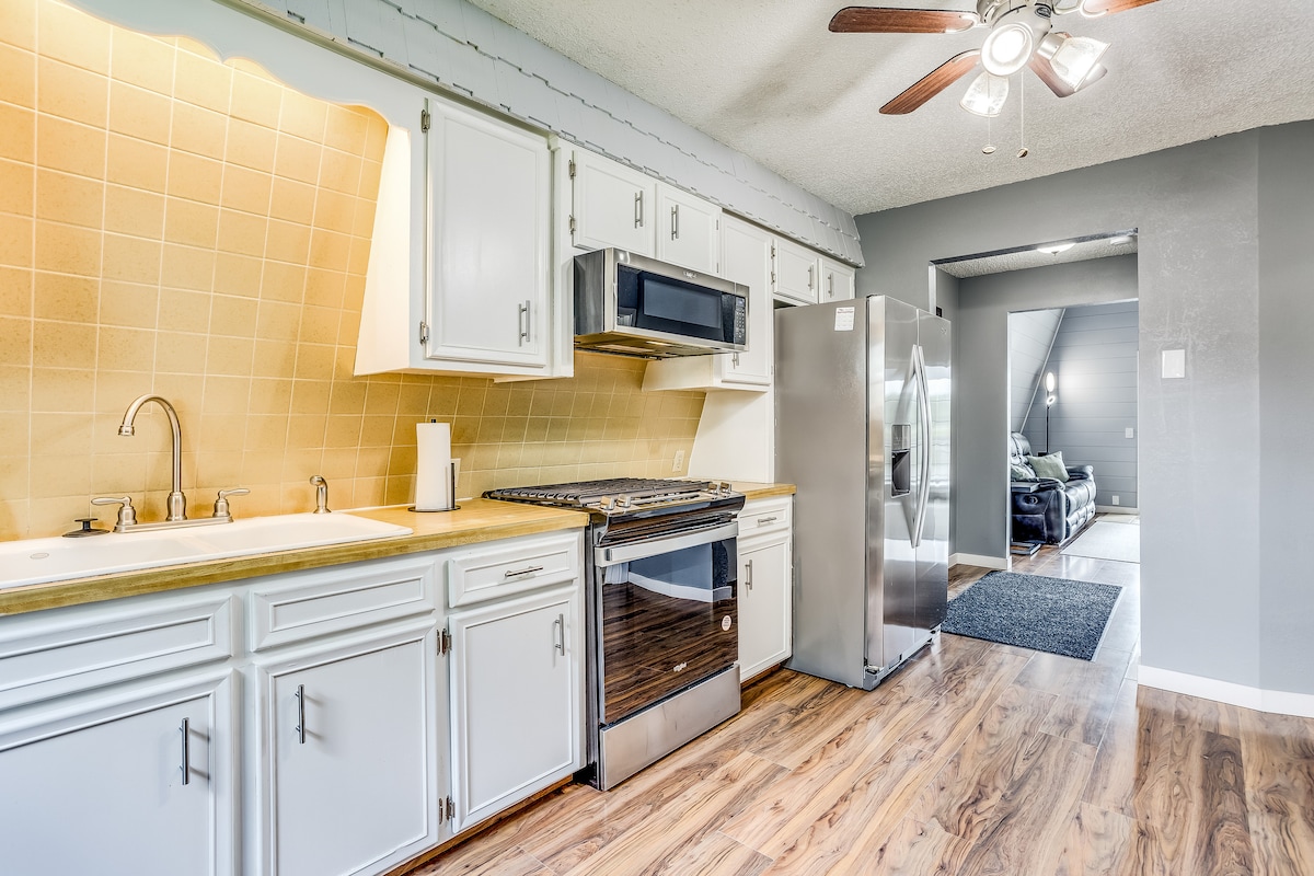 入住這間舒適的兩間臥室房源,位於安靜的街道上,距離HCC、HHS、堪薩斯州博覽會場、宇宙博物館、哈奇遜區域醫院以及許多購物和餐飲場所只有幾分鐘路程! 將車停在私人車道上,然後進來在這個家庭友好的房源中放鬆身心。 主臥室有1張雙人床,次臥室有2張單人床,可舒適入住4人。 享受棋盤遊戲、觀看電影、烹飪美食,讓自己有家的感覺!