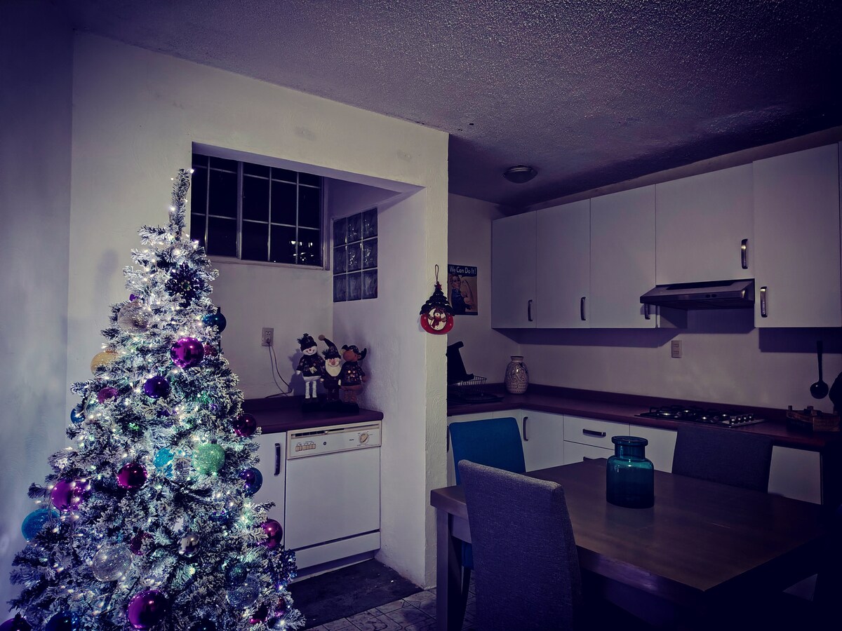 享受位於莫雷利亞 Lomas de Santa María 獨家社區的現代公寓。公寓有兩間臥室(一張加大雙人床和兩張單人床)、三間半浴室、配備爐子、咖啡機和微波爐的廚房。此外,您還可以使用私人車庫、洗衣機和烘乾機,享受更多的便利。位於安靜的區域,距離歷史中心僅 15 分鐘。靠近醫院、學校和商場。非常適合尋求舒適與時尚的家庭或團體。