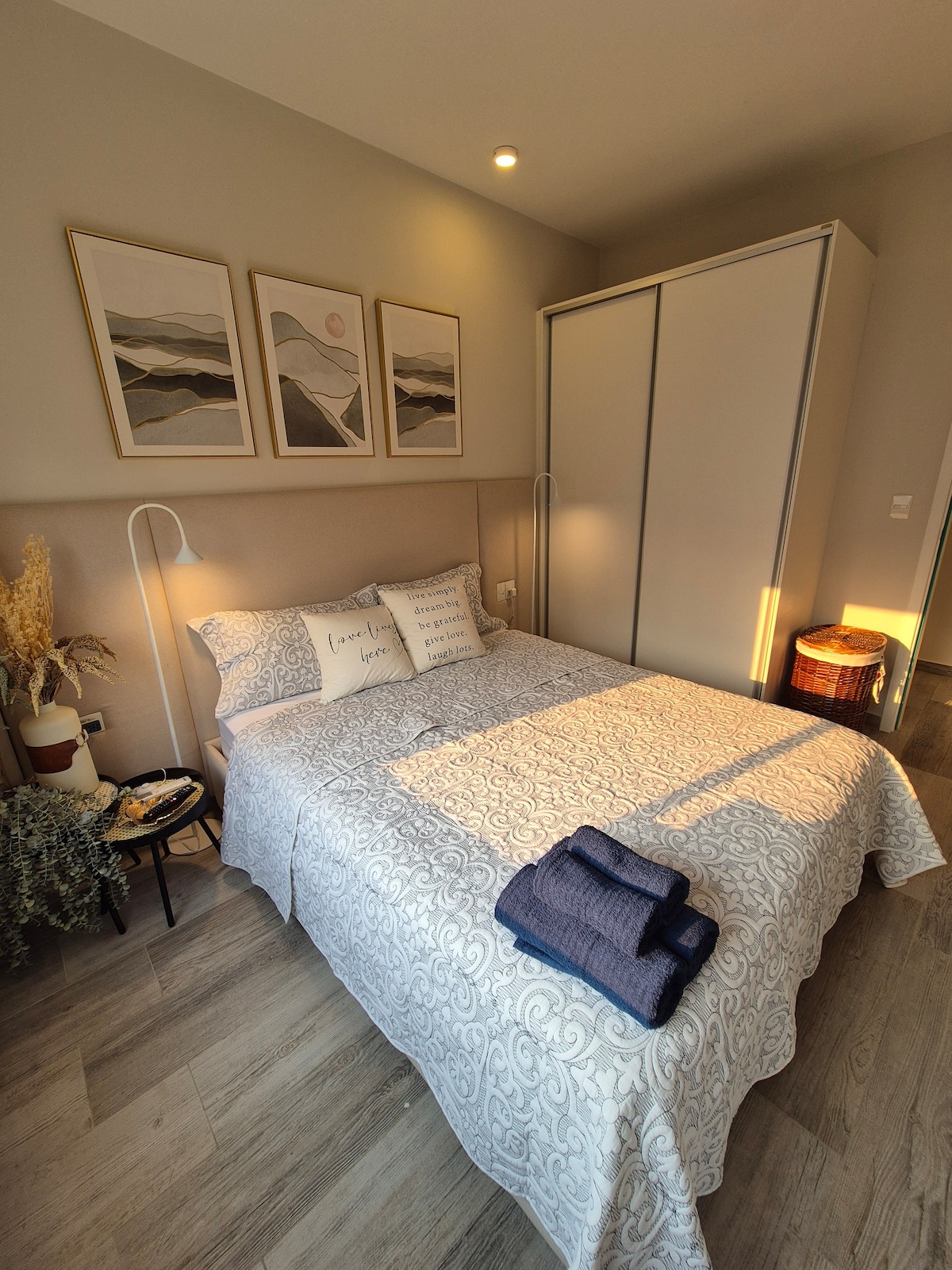 42 平方公尺,附設私人陽臺 *步行 3 分鐘即可抵達咖啡廳、餐廳和購物中心 * 1 間臥室+沙發床 *專屬工作空間 * 1 台智慧電視 * Nespresso咖啡機 *公寓內有洗衣機 *空氣炸鍋 *全天候門衛 *此單位在大樓內沒有停車位。 設備與服務 *泳池 * 2間烤肉/活動室( 1間室外和1間空調) *健身房 *電影院 *工作空間/共同工作空間 點擊右上角的「」,將我的房源❤新增至心願單。