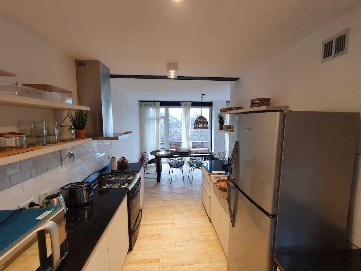 寬敞明亮的 2 間客房平房,非常適合情侶入住,舒適溫馨,地理位置優越,距離商場、公共交通工具和奧托山纜車 (Cerro Otto) 幾步之遙。 配有 WiFi 訊號、配備咖啡機、電熱水壺、微波爐和冰箱(含冷凍庫)的全功能廚房、配有浴缸的全功能浴室、配有雙人床墊的寬敞臥室、智慧電視、停車位和花園,讓您在安靜的家庭空間中享受。