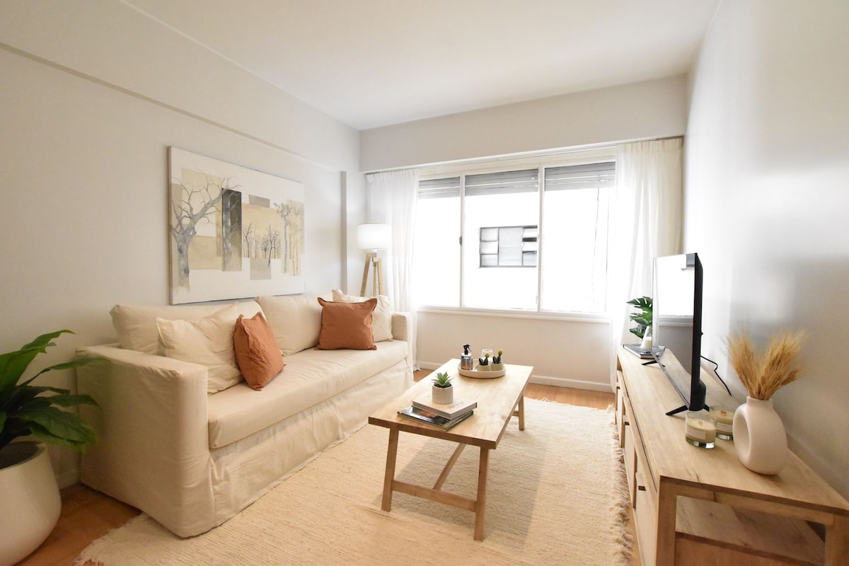 Discover Buenos Aires from this modern and light-filled 2-room apartment in the heart of Recoleta. Equipped with a double bed, sofa bed, desk, air conditioning, WiFi, TV, and a fully stocked kitchen. You’ll be steps away from museums, cafés, restaurants, parks, and public transport. Enjoy a comfortable stay in an unbeatable location. Live like a local — we look forward to hosting you!