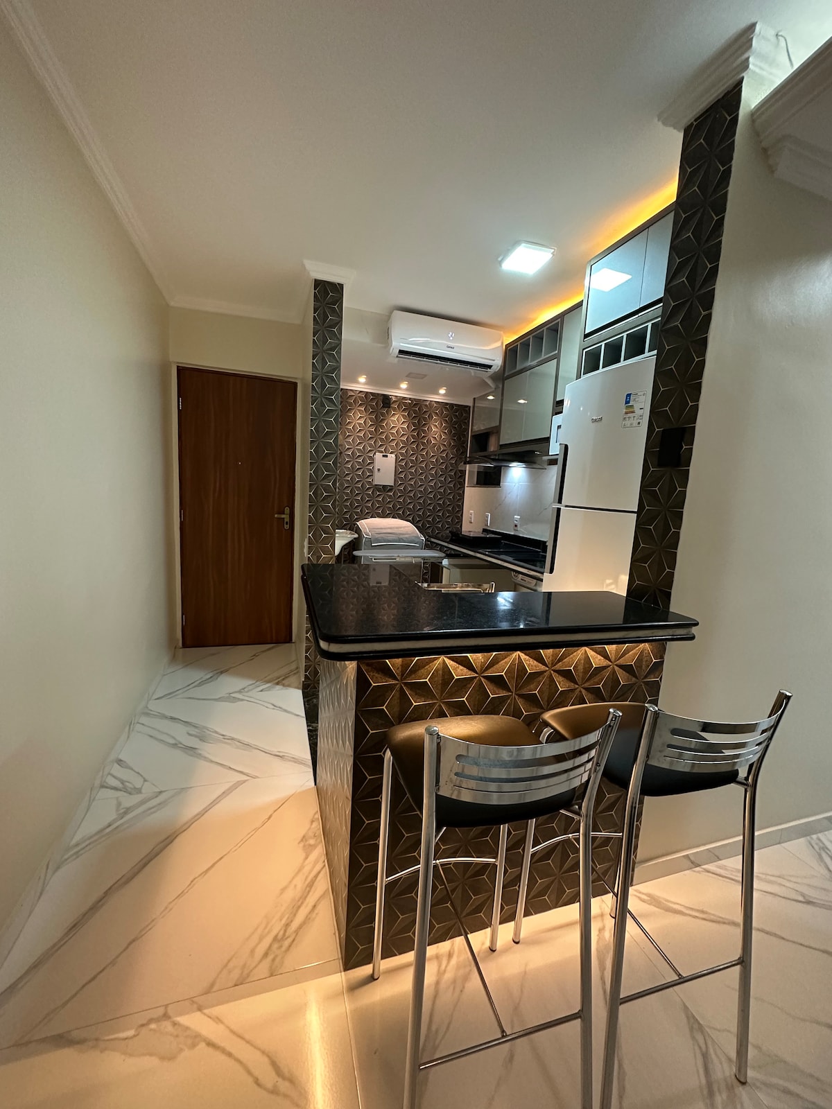 Sua família vai estar perto de tudo ao ficar neste lugar bem-localizado. É um apto compacto, com móveis sob medida, totalmente novo, conta com cozinha totalmente equipada, além de estar disponível aos hóspedes roupas de cama e toalhas de banho, como também utensílios domésticos (cafeteira, micro-ondas, sanduicheira, liquidificador, fogão com forno, geladeira, TV, Lava e Seca etc. Quarto social: 1 cama casal Quarto Suíte: 1 cama casal Sala cozinha Banheiro Social Apto 52m2 01 vaga de garagem