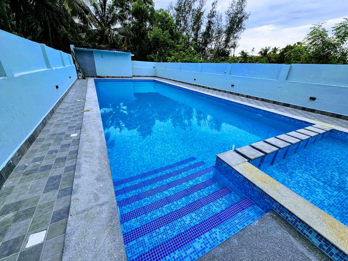 現代4間臥室ECR海灘別墅: Lumina Villa提供完美的清奈度假勝地。無論是白天或晚上,都可以享受大型閃亮的私人泳池,步行即可輕鬆前往海灘。體驗寬敞舒適的空間,非常適合小型和大型團體(可睡24人)和家庭娛樂,部分房間可欣賞海景!包括設備齊全的廚房、WiFi、電源備份、停車位和有用的看管人支援。附近有送餐/餐廳。您在ECR上難忘住宿、團體樂趣和小型活動的理想基地。