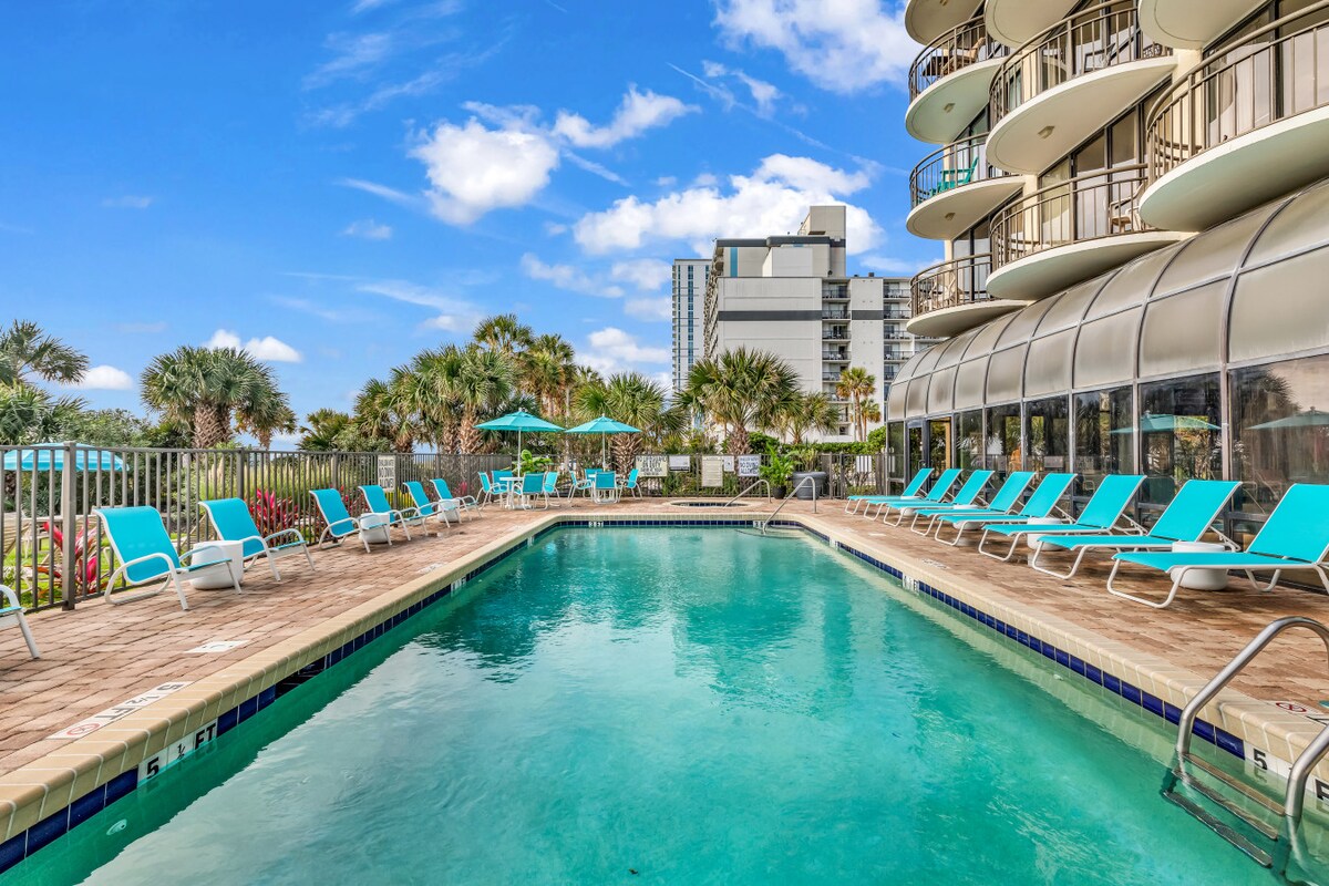 🌊 海濱度假勝地 | 2025 年新翻修 醒來時,從私人陽臺欣賞海浪聲音和大西洋全景! 這間現代化、時尚的2臥室公寓位於默特爾海灘市中心,配有現代化裝飾、木地板、沙發床和高級床墊。 享受全套廚房、洗衣機/烘乾機和度假村設施—室內/室外泳池、按摩浴缸、漂流河和兒童玩水區。 距離家庭王國、步道和二大道碼頭僅幾步之遙—您的完美海岸度假勝地等待著您!