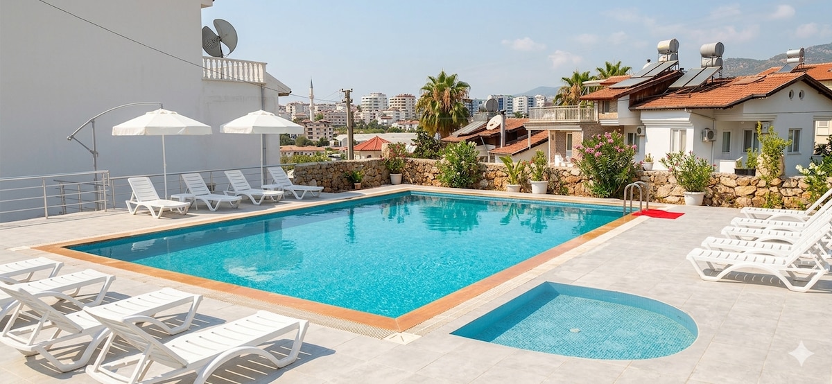 適合大家庭和一羣好友入住,可入住8 +2人。 世界著名的Cleopatra海灘距離6公裏。 在我們的別墅花園裡,有花卉和樹木、可欣賞海景的泳池和燒烤。