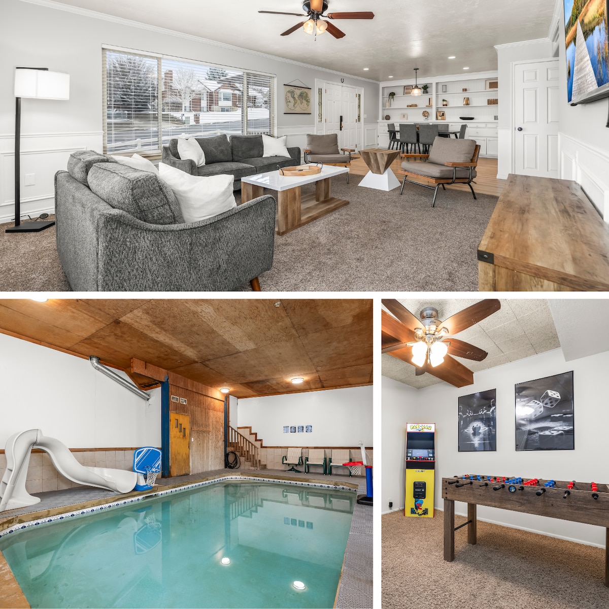 這個全新的寬敞建築既奢華又舒適。擁有令人驚嘆的拱形天花板、美麗的裝飾、無盡的自然光線和周到的觸感,您會感受到設計和裝飾中的愛。此房源提供4間臥室和2.5間浴室,是放鬆身心的好去處。 位於市中心-距離I-15 2英里,距離Target、In-N-Out、Cinemark、Waffle Love、Olive Garden、Texas Roadhouse等3英里!距離Silicon Slopes 15分鐘。 -美國福克-