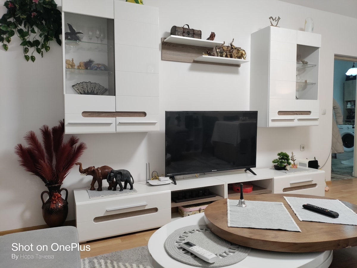 A lovely apartment in the heart of Pazardzhik is warm and quiet with a breathtaking view, a TOP location a 100m to 24h supermarket, a bank, an ATM, pharmacies a kids' playground, and restaurants. Extremely fast optical internet. A 50-inch 4k smart TV with backlights, youtube, Chromecast, HBO Max, Netflix, and Disney+ free access during your stay, and additional full HD TV in the bedroom. Free parking and less than 100 meters from a public transport central stop. Everything you need for your stay