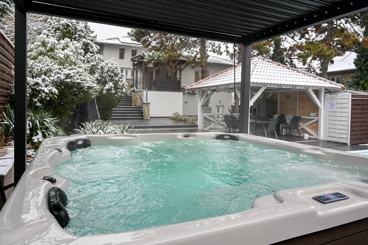 放鬆–健康–奢華–自然 我們位於布達佩斯旁邊綠色寧靜的郊區,優雅且設備齊全的公寓歡迎房客。 兩間獨立公寓提供完全放鬆,配有自己的露臺、泳池、按摩浴缸和桑拿房。 乒乓球桌、燒烤設施、安靜的街區和免費停車位都有助於完美的假期。 無論是短期住宿或長期假期,這裡都是探索布達佩斯或巴拉頓湖的理想起點。