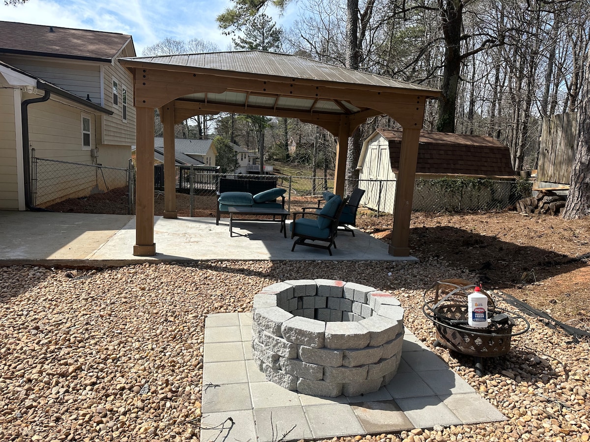 這間溫馨的單間公寓超級私密,房子側面有自己的入口。 此外,它配有全套廚房和浴室。 這是一個寧靜的私人空間,配有設備齊全的廚房,配有大冰箱、一張雙人床、一臺45英寸智慧電視、一個私人入口、一個通往後院的戶外露臺,以及一個停車位。 我們距離亞特蘭大市中心、賓士體育場、喬治亞水族館僅30分鐘車程,距離南方天然氣體育館僅15分鐘車程。