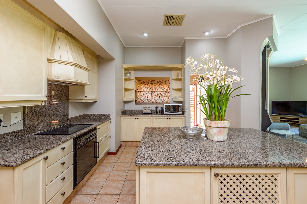 在這個寬敞、寧靜的空間,位於安靜的桑頓郊區,距離Monte Casino、Fourways Mall和Lanseria機場只有一箭之遙。 公寓擁有兩間套房臥室和寬敞的公共區域。 有備用電源,可以在減載期間保持WiFi連接,還有一個美麗的俱樂部和健身區域,您可以暫時逃離現實。 在這個可愛的家庭友好型住宅中逃離市中心的喧囂,適合四人入住。