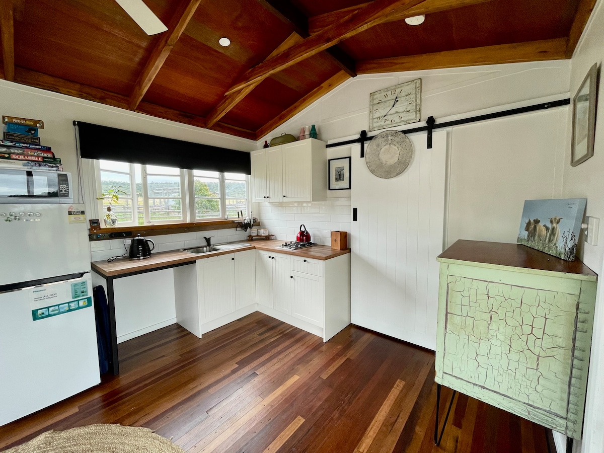 One-bedroom tiny home with modern open plan living on semi-rural acreage. Close to numerous wedding venues, self-contained, linen provided, reverse cycle air-conditioning, wood fireplace with breathtaking sunsets. Entertainment provided by playful ball chasing pooches. Max 2 guests. Owers live in separate homestead. Visiting for a wedding or special event? Makeup artistry is covered by experienced MUA on site. Exclusively for guests of Isobel’s Cottage. Enquire when booking.