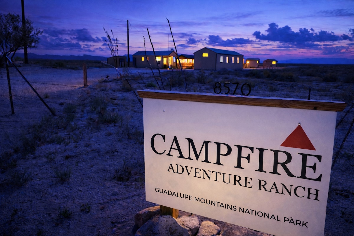 The Glamping Tent at Campfire Adventure Ranch sits near the Salt Dunes Basin Trailhead of Guadalupe Mountains National Park. This remote desert retreat offers a queen bed, and linens. Outside: a picnic table and one of the best views of the Guadalupe Mountains. Enjoy the trading post, ride a fat tire bike, or join a tour—all with front row views of the highest peak in Texas.