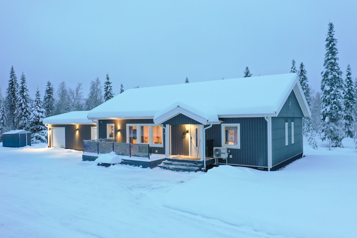 全新的木製度假屋位於距離羅瓦涅米60公裏的小村莊,距離瑞典邊境40公裏。 小屋附近有一個大湖、鬆樹林和越野滑雪和徒步旅行的可能性。 房子設備精良,現代化。 這是一個適合有小孩的家庭的好度假屋。 有兩間臥室、一個睡覺陽臺、一張牀的客廳、沙發、餐桌和廚房、浴室和桑拿房。 您有時會在房子附近看到馴鹿。