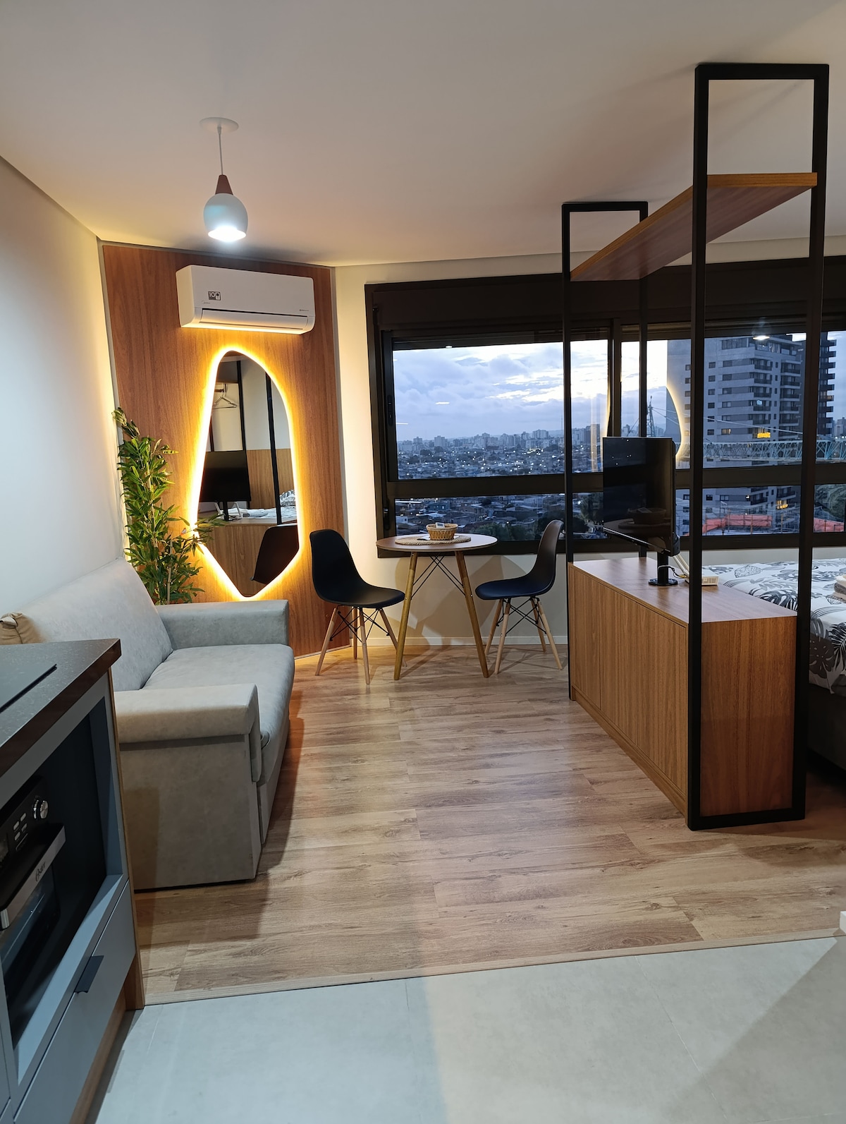 Hospede-se em um loft moderno, com uma vista deslumbrante da cidade. Localizado Edifício Aurora, este studio foi pensado para oferecer o máximo de conforto, praticidade e estilo para você. Destaques: • Cama Queen com enxoval premium • Smart TV 50” com rotação 360° • Wi-Fi de alta velocidade • Ar-condicionado quente e frio • Cozinha completa • Cafeteira Nespresso • Espelho de corpo inteiro • Amenities de banho e jogo de toalhas • Secador de cabelo • Garagem no prédio • Portaria 24h
