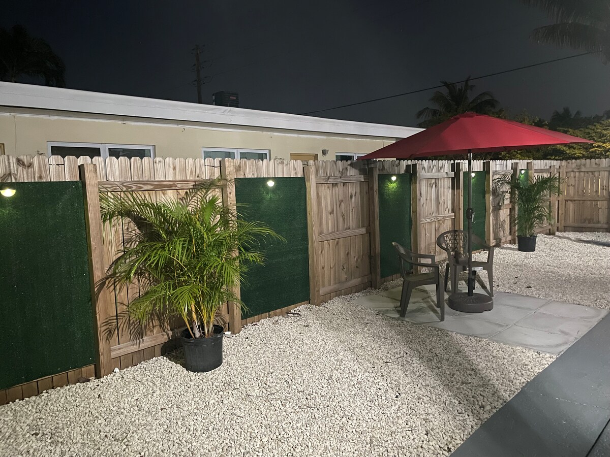 This amazing mini resort has been created with the ultimate comfort of our guests in mind. Enjoy a courtyard and pool deck designed with plenty of outdoor seating and a tiki hut. The property has synthetic grass through out, perfect for kids and family to sit and play on. Super fast Wifi. USB ports in the bedroom. Super comfortable bed. Smart Tv that you can Stream your favorite movies to. Washer/Dryer combo. Outdoor BBQ. Our home is located Minutes from downtown and Hollywood beach/ boardwalk.