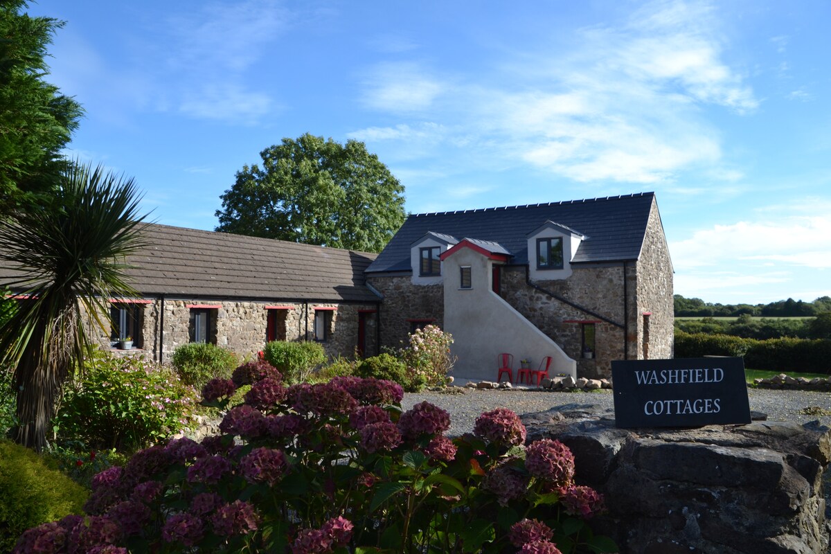 我們是一個農場,位於彭布羅克郡國家公園( Pembrokeshire National Park )美妙的地方。 如果您渴望安靜地聆聽鳥鳴或牛輕輕地哞哞叫,請入住我們的房源! 乳製品位於我們的農場,靠近主要農舍,從通往小型私人封閉花園的大玻璃露臺門可欣賞農田和海岸的美景。 步行10分鐘即可抵達私人農場小徑,直接通往海岸小徑。