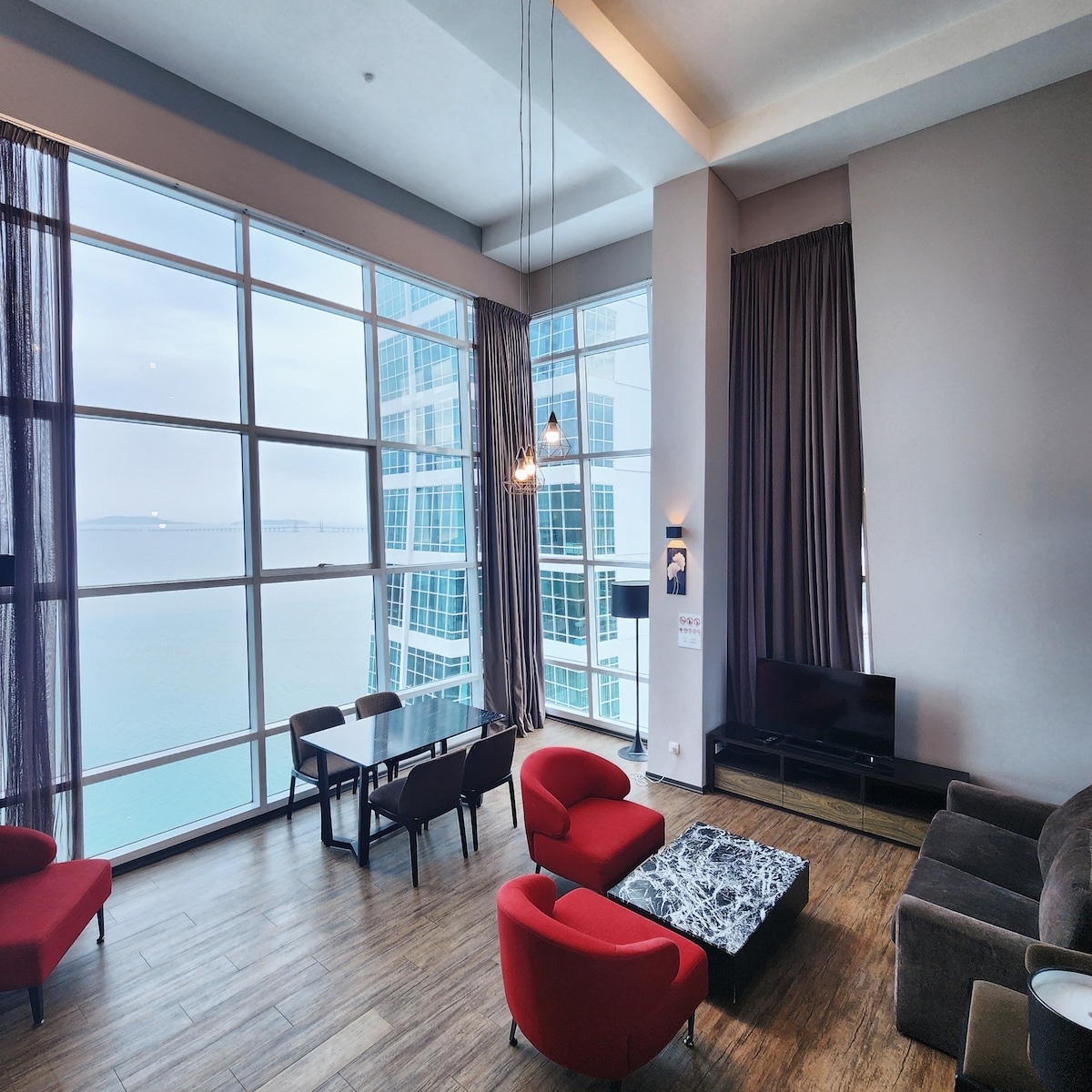 Jazz Suites Penang Relax in this peaceful high-floor seaview unit at Jazz Suites Penang, Tanjung Tokong. Enjoy unobstructed sea views and beautiful sunsets in a cozy, clean, and comfortable space. The unit comes with self check-in, free parking, and access to pool & gym. Conveniently located near Gurney Drive, Straits Quay, Island Plaza, cafes, and local food spots — perfect for staycations or short getaways. Come experience a peaceful, cozy, and memorable stay by the sea in Penang.