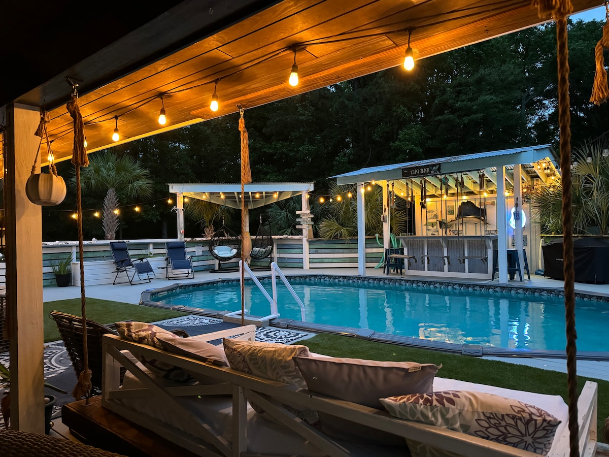 A peaceful, clean, and inviting coastal home-perfect for unwinding after a sandy beach day or beginning an easy stroll through Surf City’s charming local boutiques. The kitchen is ideal for shared meals, and the spacious backyard is designed for both relaxation and play. Enjoy evenings on the patio with the grill and fire pit, while the swing and lawn games keep everyone entertained beyond the beach.
