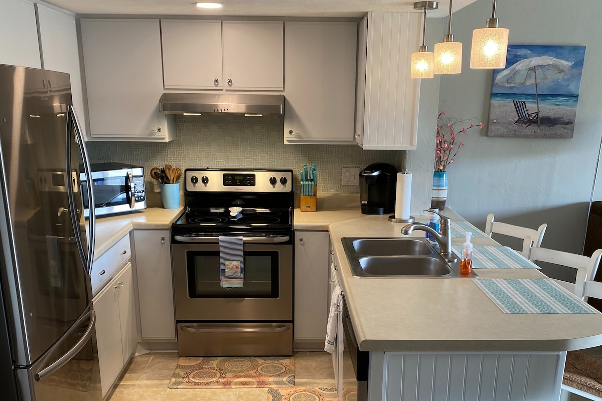 溫和的日子或無盡的海浪,完全由您決定! -海濱、海景、角落單位,位於衝浪城、頂帆島 -距離水邊幾步之遙,在海灘上,從陽臺可直接欣賞海景 -一樓單位(高架-一樓梯)包括預留的有蓋停車位 -可睡4人-一張加大雙人床、2張雙人牆床和2間浴室(非常適合情侶或小家庭) -購物、餐廳和碼頭1英里,開車3分鐘 -零入口泳池、現場洗衣設施、健身室