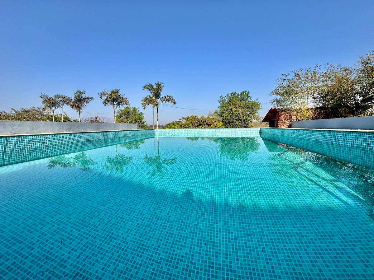 體驗寧靜的度假勝地,位於Karjat Nasrapur的風景如畫的3臥室4浴室農舍。 這個綠意盎然的度假勝地設有泳池和流動的河流,並曾在《Hotelier India》雜誌中介紹。 這間鄉村風格的房源以愛打造,提供寬敞的開放空間,讓人感受到自由與大自然的交融,是都市人排毒的理想度假勝地。 它以對環境永續性的承諾而脫穎而出。 這棟別墅可供15位房客過夜,30位房客白天入住,非常適合舉辦派對。
