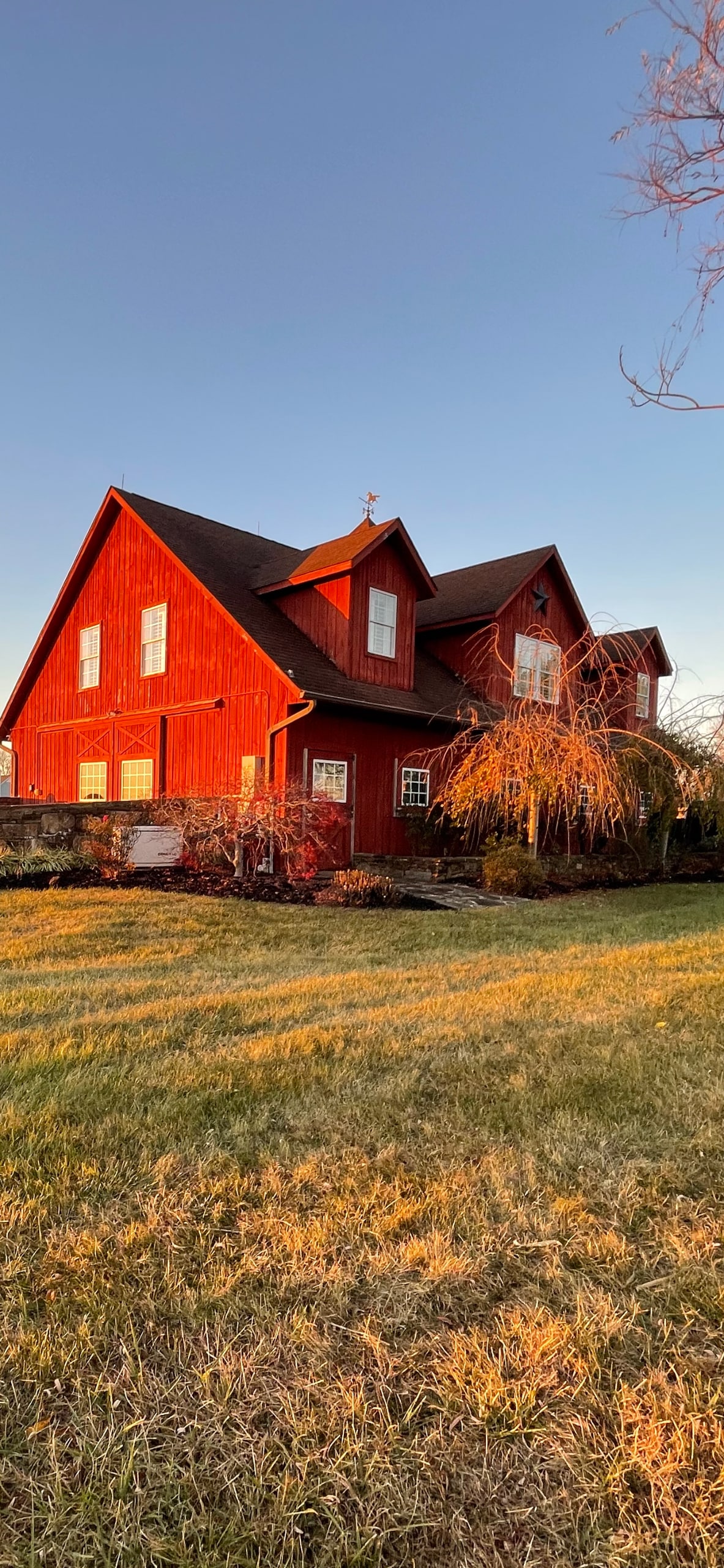 馬車房是我們雪松馬廄的二樓,多年前被改造成公寓。今年春天,它被完全重新設計,並經過專業裝飾,使其成為一個舒適+豪華的度假勝地,景觀令人驚嘆。雖然我們不再使用馬廄來容納動物,但我們仍然在牧場上飼養幾頭牛和羊,供您享受。公寓後面的窗戶牆為您提供周圍農田的最壯麗景觀和令人難忘的日出。