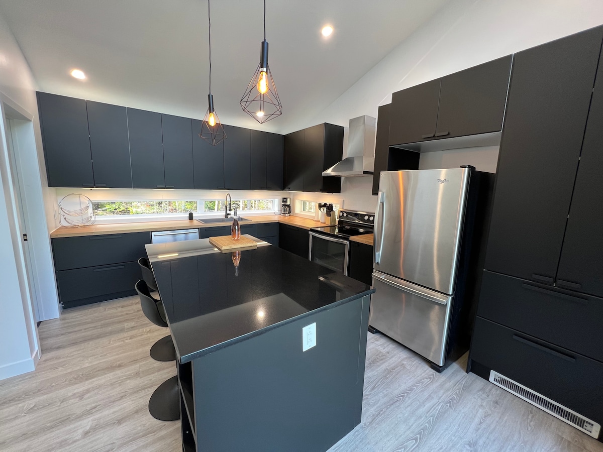 Superbe chalet contemporain, chaleureux et luxueux pouvant accueillir 7 invités, construction neuve, situé à l’embouchure de la baie de Gaspé directement au bord de l’eau avec une vue sur le Golfe du Saint-Laurent. Endroit paisible avec vue à couper le souffle! Le chalet est situé à mi-chemin entre Percé et Gaspé et à distance de marche d’un petit havre de pêche.
