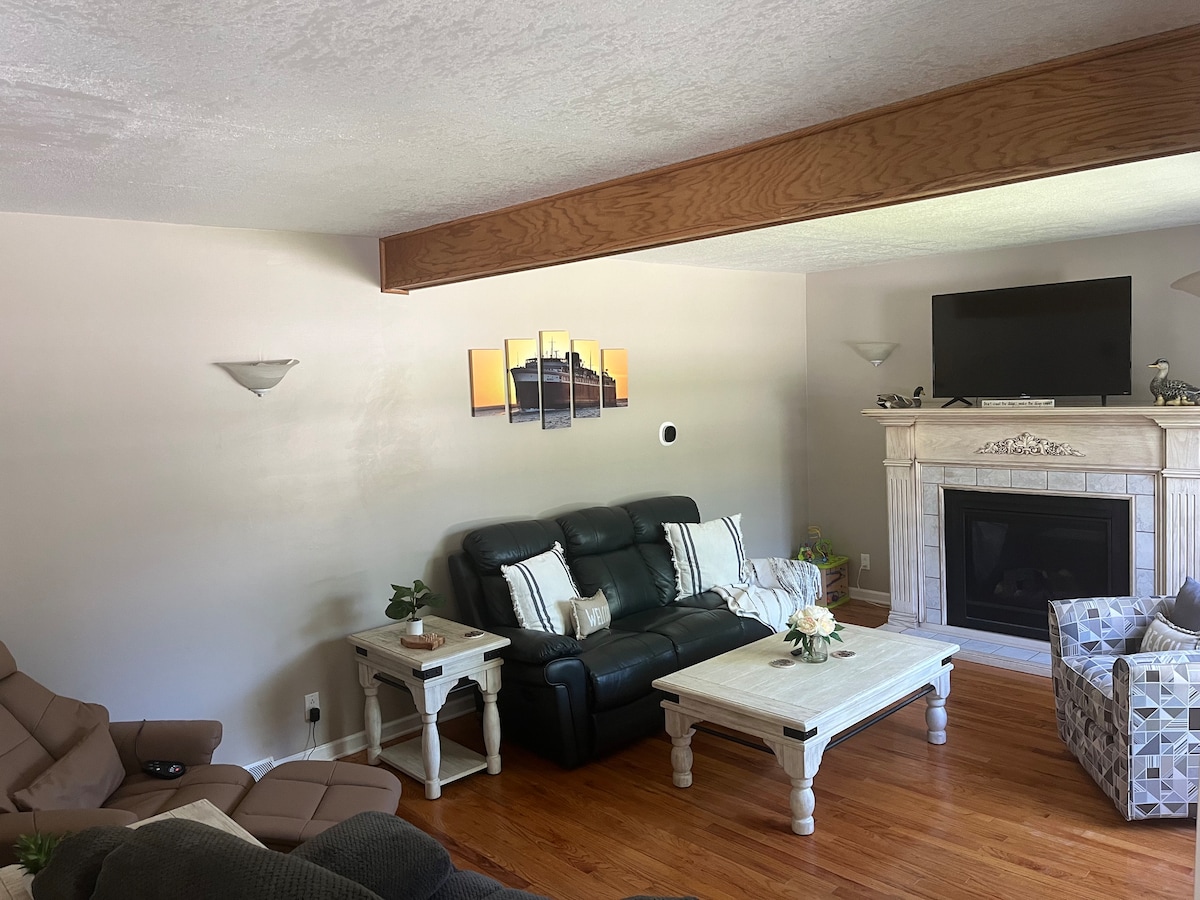 可愛、最近翻新的房源,步行3個街區即可抵達Stearns公共海灘。可入住10人。WiFi。寬敞的圍欄後院。提供烤架和火坑。前門廊(部分封閉)。三間臥室/1.5間浴室-主浴室有淋浴間和獨立浴缸。 靠近市中心餐廳和商店。在House of Flavors停留,享用美味的冰淇淋。在Ludington州立公園的眾多步道之一徒步旅行。沿著碼頭步行前往燈塔。 有很多值得一看和參與的旅程...