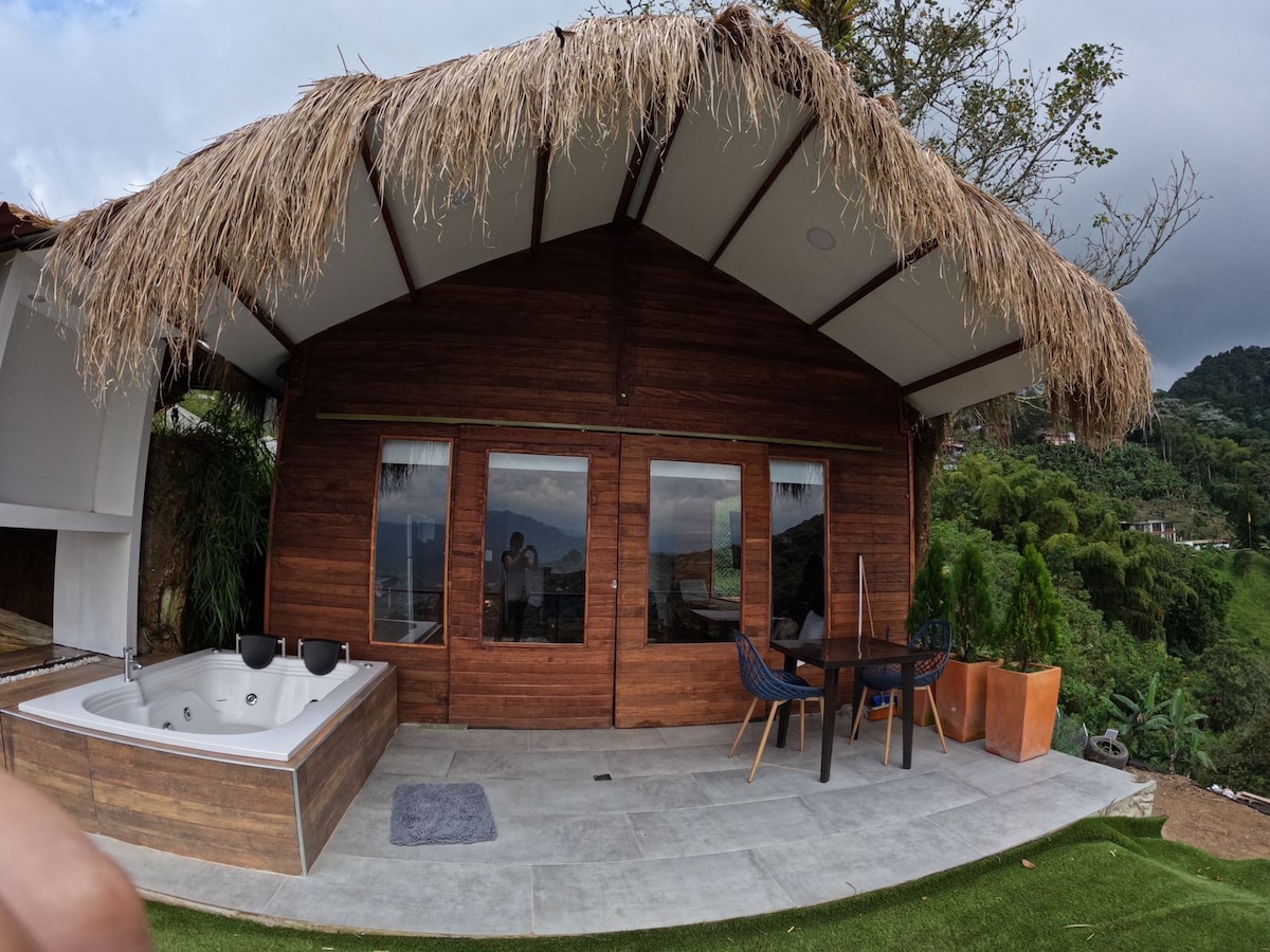 享受我們寬敞的 6 人房屋的寧靜,距離菲蘭迪亞 (Filandia) 7 分鐘。配備大型恆溫按摩浴池(加熱氣體需另行購買),非常適合放鬆身心。探索附近的自然步道,享受寬敞的綠地,非常適合家庭入住。享受獨特的自然體驗。
