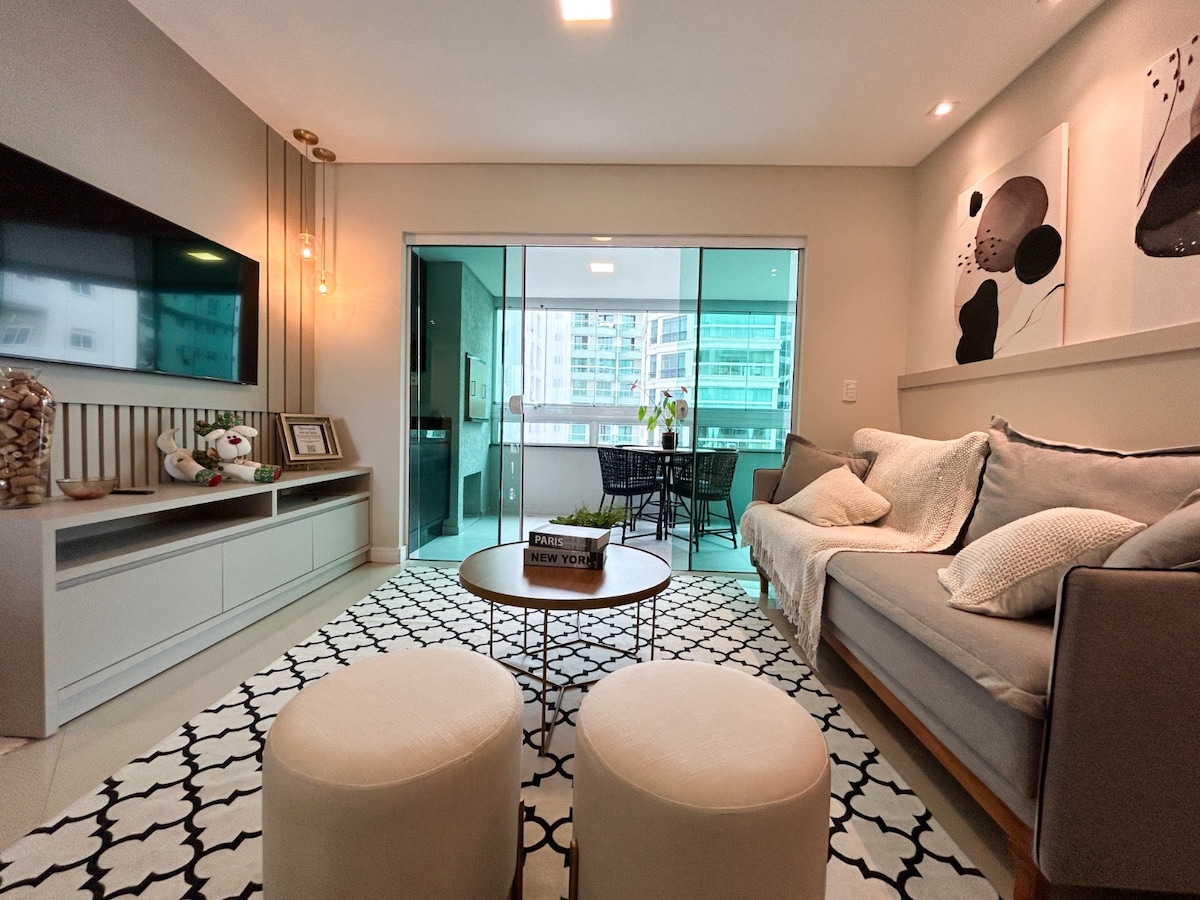 Hospede-se em um apartamento novo e de alto padrão na quadra do mar em Meia Praia – Itapema, com vista incrível e localização privilegiada. São 3 suítes amplas, incluindo master com chuveiro duplo, ar-condicionado e Smart TV em todos os ambientes. Varanda gourmet, cozinha completa, enxoval, secador e Wi-Fi rápido. A poucos passos da praia e do Píer Oporto, cercado por restaurantes e comércio. Conforto, praticidade e tudo a pé.